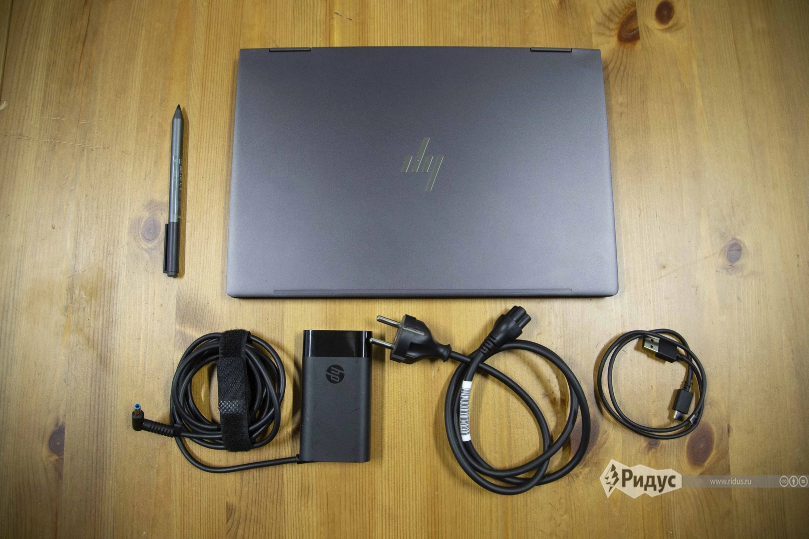 От комплекта ноутбуков никогда особо не ждешь многого, но в HP приятно удивили. Во-первых, помимо стандартного набора в виде зарядного устройства и документации имеется переходник с USB Type-C на стандартный USB-A. А во-вторых, вместе с устройством поставляется еще и чувствительное к степеням нажатия перо.
