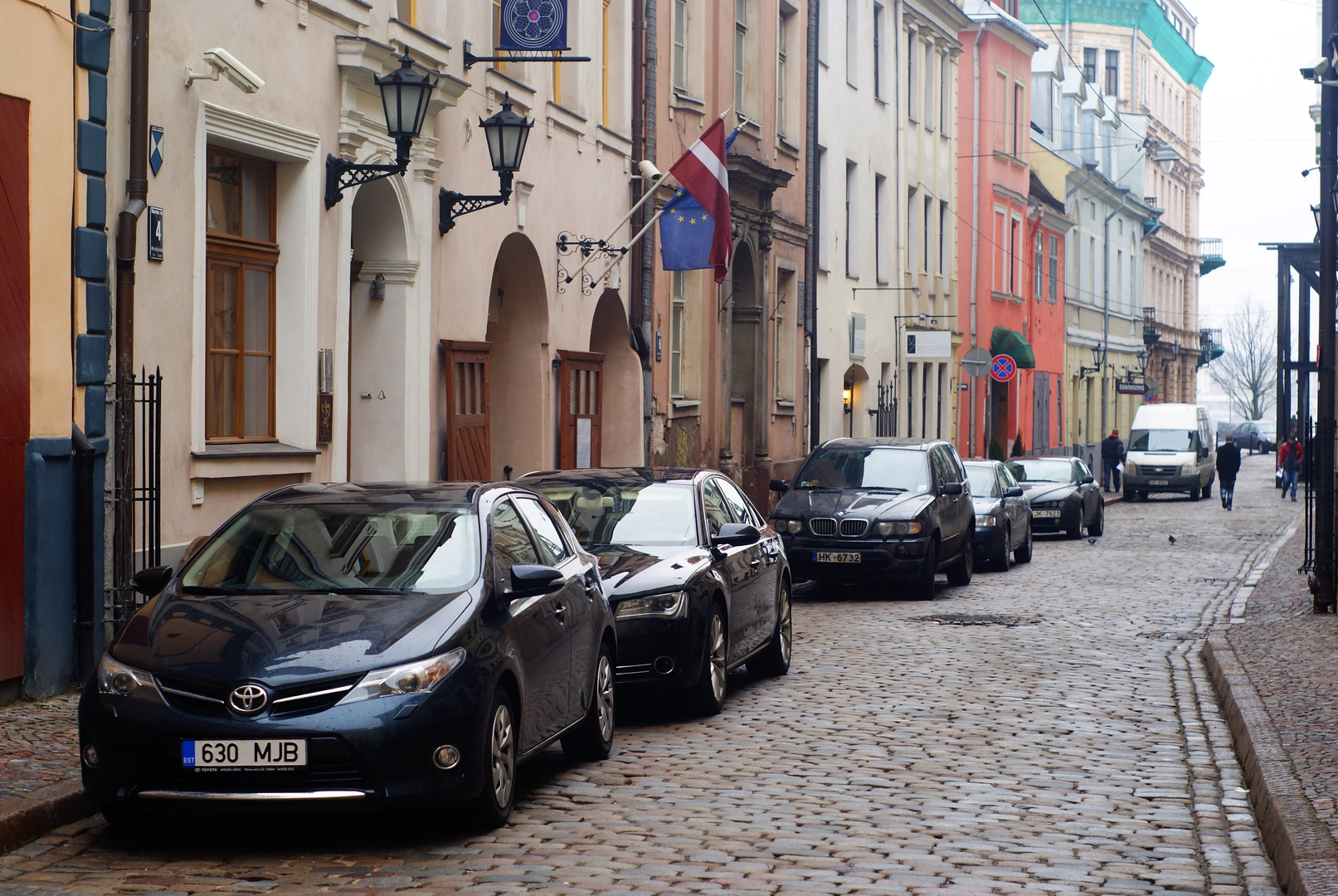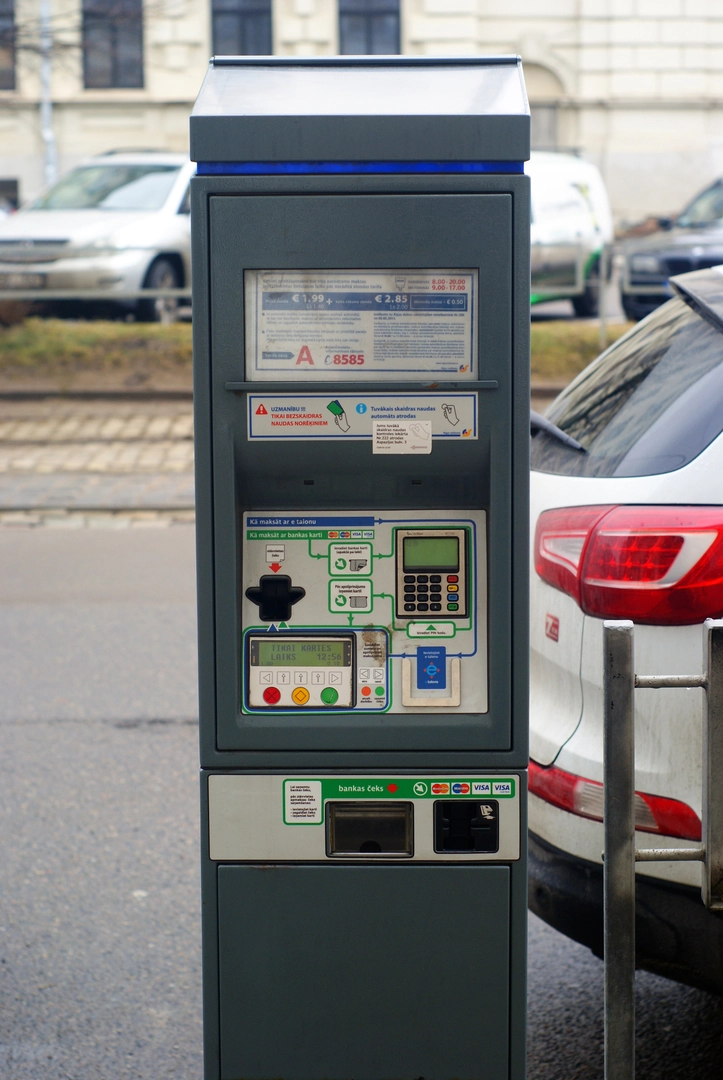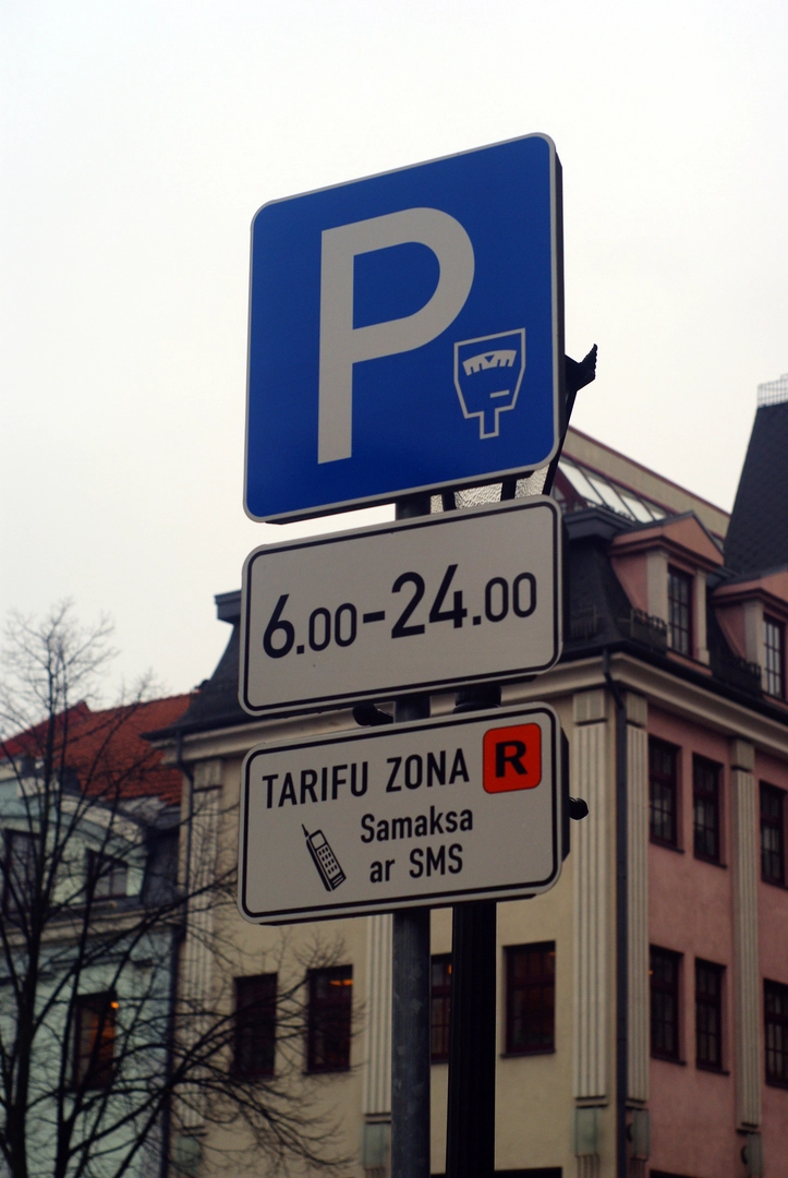 Вся парковка в центре Риги является платной. Город поделен на зоны, которые отличаются ценой за час. Самая дорогая зона паркинга в исторической части центра. В выходные дни и праздничные парковка является бесплатной. Сеть парковок принадлежит муниципальному предприятия «Ригас Сатиксме», который является оператором общественного транспорта. В зоне парковки находится автомат, где можно оплатить место. Платеж также возможно осуществить при помощи смс и заранее оплаченного места. Специальные контролеры ходят по зонам и проверяют наличие покупки. В случае уклонения - штраф. Сейчас введутся переговоры с «Еталонс», системой оплаты проезда в общественном транспорте. Планируется, что через платежную систему можно будет оплатить парковочное место. Данную карту хотят сделать универсальной, например, сейчас в некоторых школах Риги можно оплачивать обед при помощи данной карты.