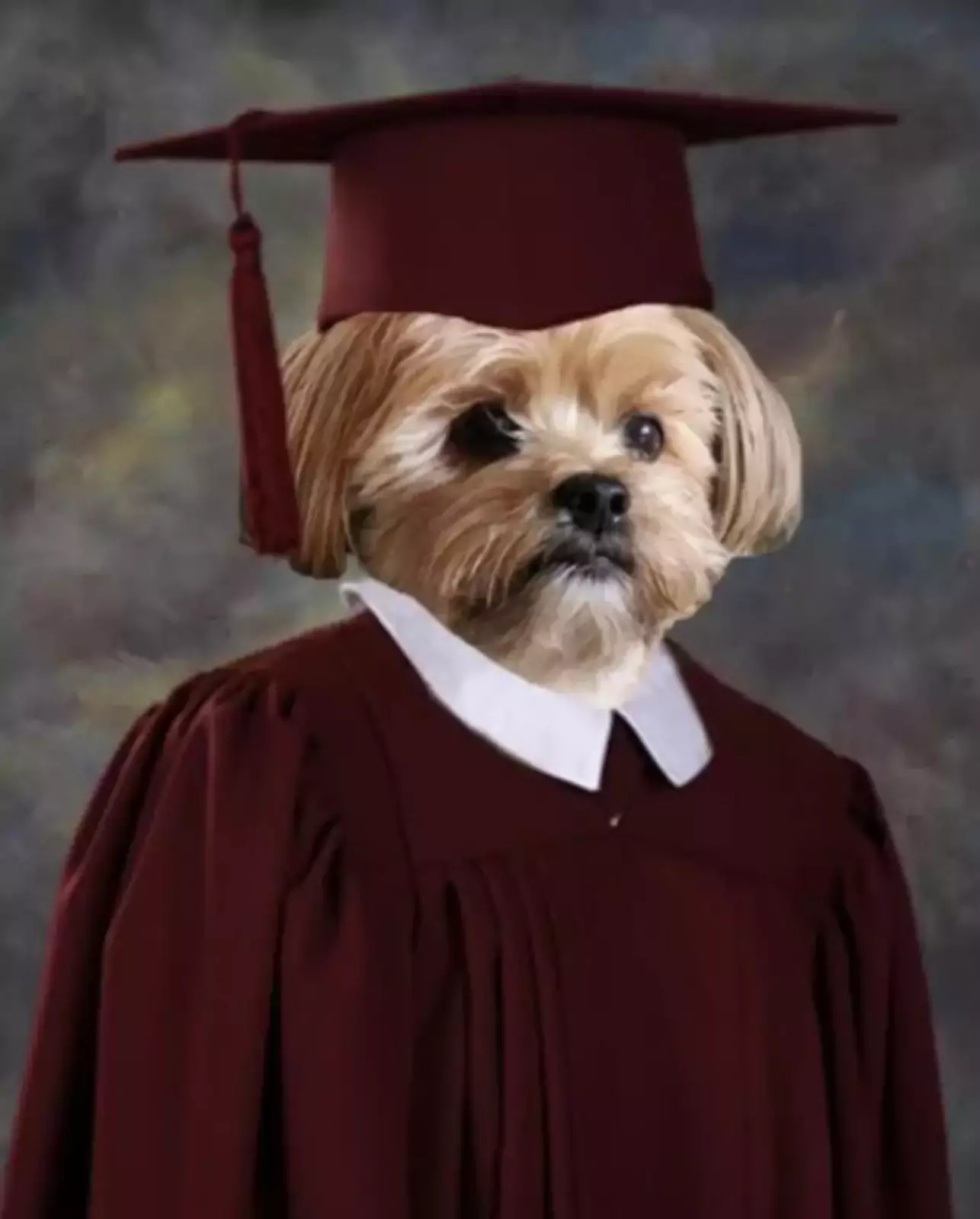 Будучи собакой, Йоги не мог по-настоящему закончить университет, но это не помешало его хозяйке Оливии сделать для него очаровательное фото выпускника в мантии и конфедератке.