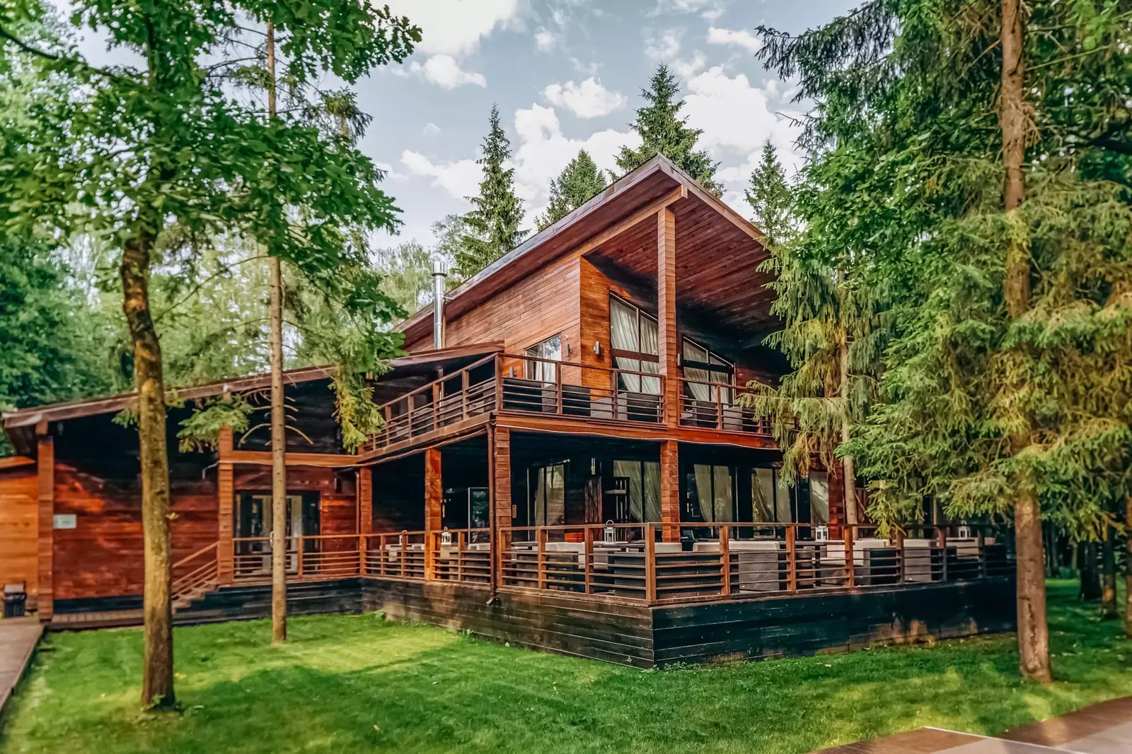 - База отдыха «Лесной дом» состоит из четырех коттеджей. В каждом из них есть санузел с душевой кабиной, обеденный зал, совмещенный с кухней, и несколько спальных комнат.