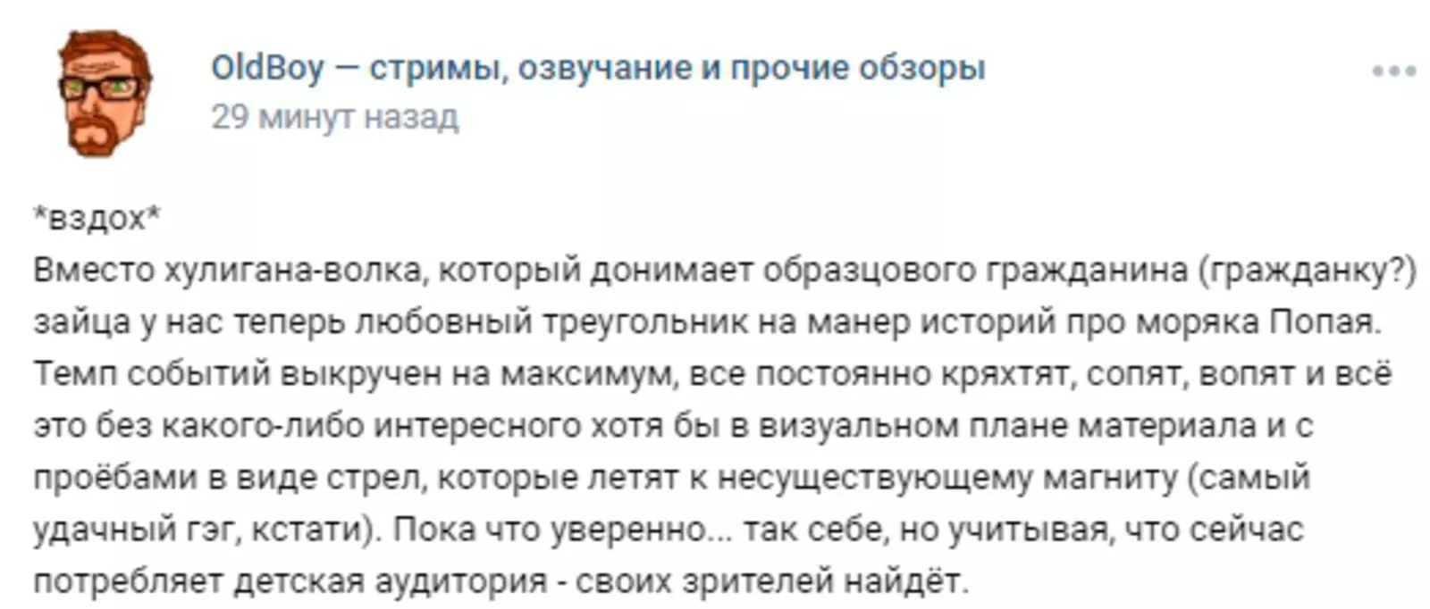 Тем не менее, у нового «Ну, погоди!» нашлись заступники, которые даже предпочли его советскому мультсериалу, разругав последний в пух и прах.