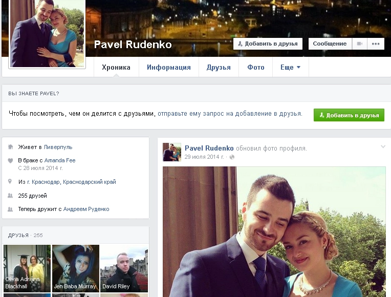 На предстоящих на Кубани выборах в губернаторы баллотируется кандидат от партии «Справедливая Россия» Андрей Руденко. Участвующий в гонке за губернаторское кресло эсер обещает избирателям «достойную жизнь», но предпочитает умалчивать, что таковую уже ведет его сын Павел, в минувшем году женившийся на гражданке Великобритании. Как следует из информации с персональной странички Павла Руденко в Фейсбуке, с английской подданной Амандой Фии он познакомился в 2010 году. Спустя несколько лет, в конце июля 2014 года молодые сочетались браком в Ливерпуле (зал бракосочетаний St George’s Hall), где проживают и поныне.