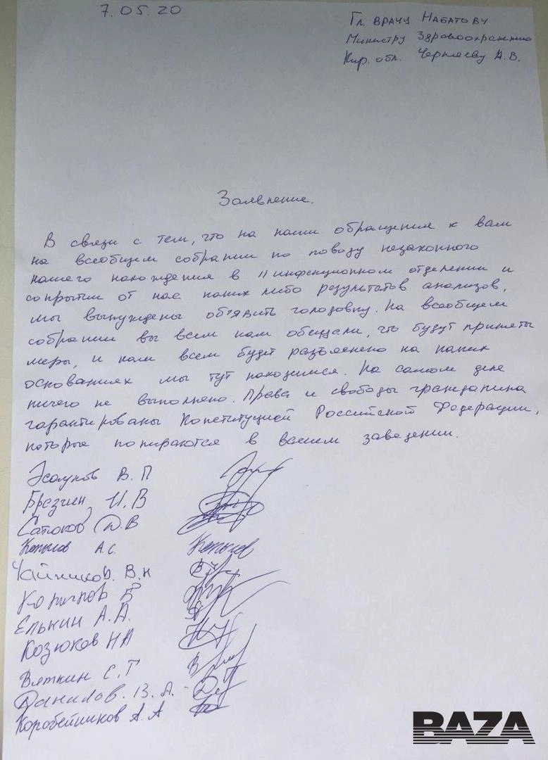 Telegram-канал Baza пишет, что 11 пациентов Ганинского госпиталя в Кировской области устроили голодовку. Все дело в том, что, по их словам, они не могут узнать результаты анализов на коронавирус.