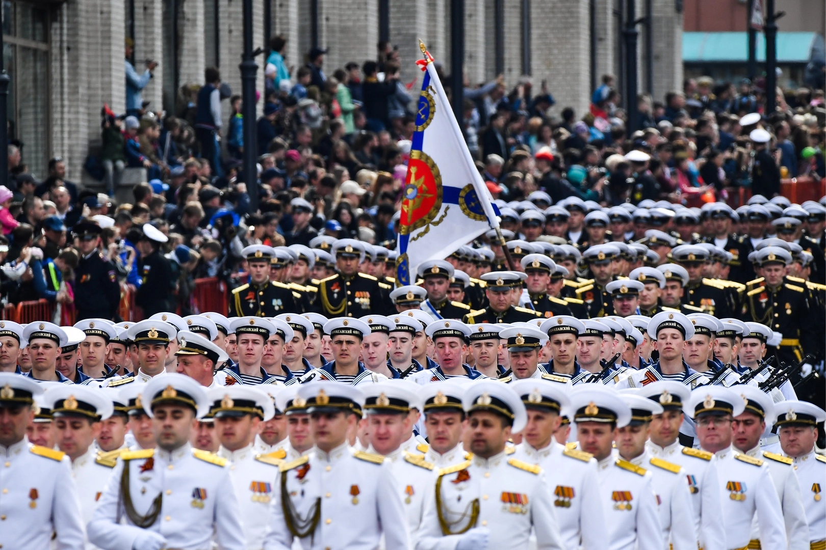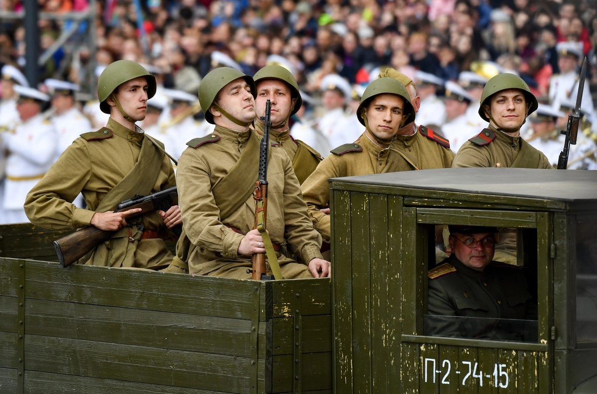 Пешая колонна была сформирована из 35 парадных расчетов. Затем прошла военная техника. Воздушную часть парада решили отменить из-за низкой облачности.