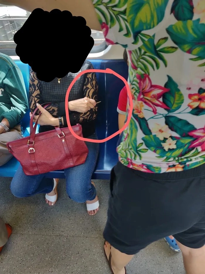 Эта фотография была сделана девушкой-очевидцем и опубликована в Сети. На фото запечатлено, как женщина направляет маленький острый предмет, напоминающий зубочистку, в сторону ребенка, сидящего слева от нее.