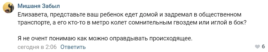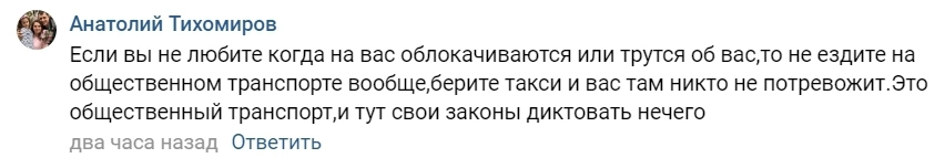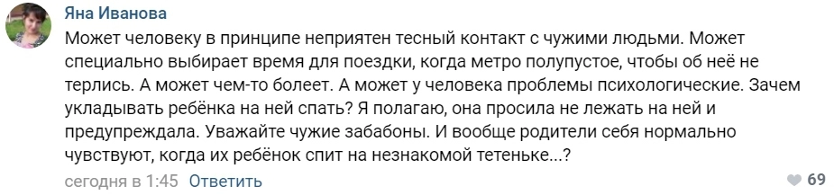 Другие же осудили женщину, указав на то, что метро — это общественный транспорт и если ей не нравятся чужие прикосновения, то стоило ехать на такси.