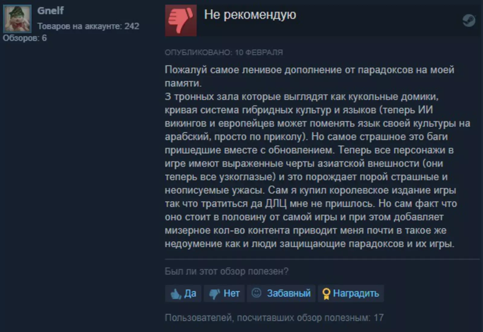 Нашлись, конечно, и те, кому новое дополнение вполне понравилось: именно это не дало игре утонуть в негативных отзывах.