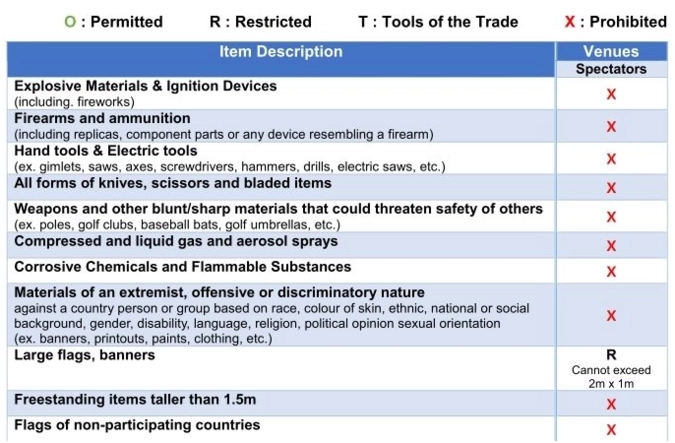 Флаги стран — «неучастниц» Олимпиады входят в довольно длинный список предметов, которые запрещены к проносу на олимпийские объекты, наряду со взрывчаткой, оружием, горючими материалами и экстремистской литературой.