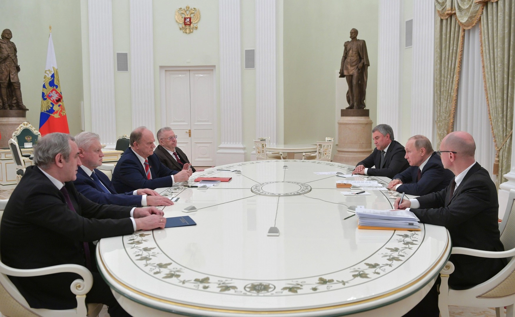 Встреча Путина и лидеров парламентских партий состоялась 5 марта. Российский лидер обсудил с народными избранниками предстоящие поправки в Конституцию, а также поблагодарил их за активное участие в процессе принятия этих поправок.