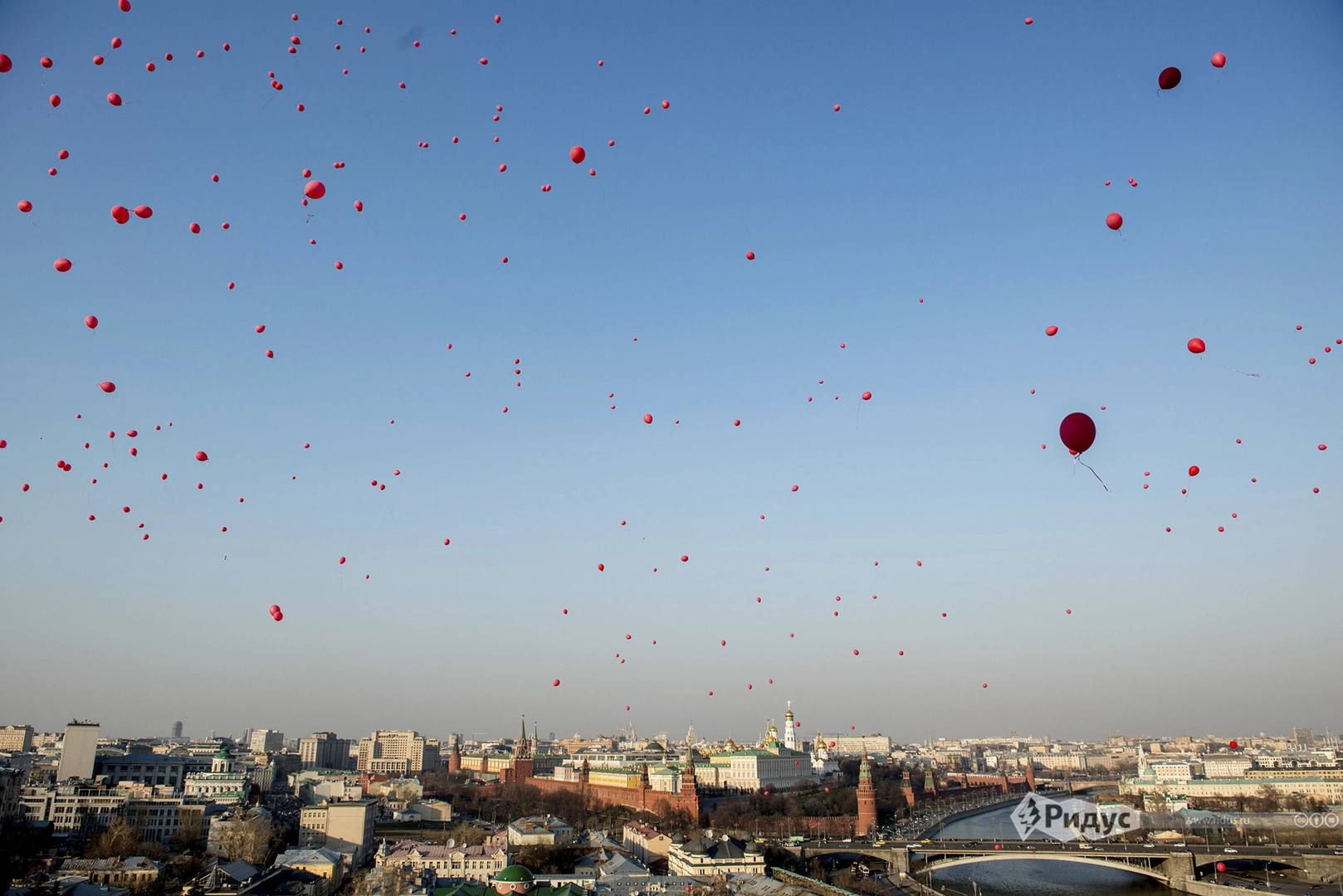 По окончании построения воздушные шары были отпущены и на насколько минут полностью затмили небо над Храмом, а затем улетели в сторону Останкинской телебашни.