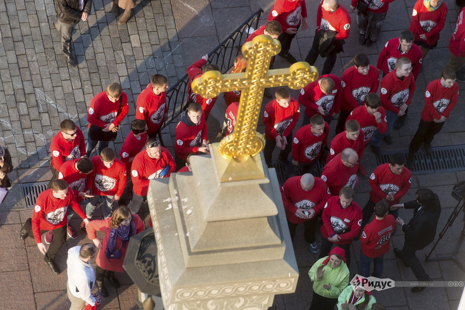 В воскресенье после окончания вечерней службы у восточной стороны Храма Христа Спасителя прошел флешмоб православной молодежи Москвы: представителей молодежных движений, кадетов и студентов московских вузов.