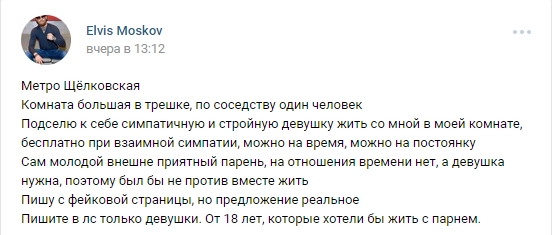 Пожалуй, сейчас проще всего сдать или снять квартиру через соцсети. Иногда в тематических группах появляются забавные, а порой и вовсе странные объявления. «Ридус» составил подборку самых интересных из них.