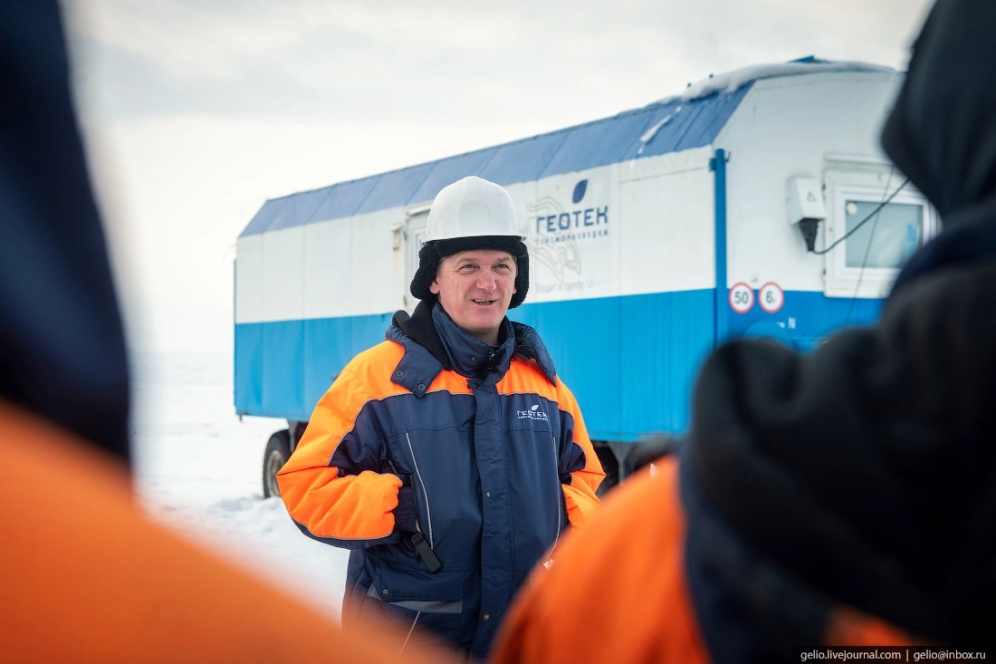 4. Полевой лагерь: жилые и производственные вагон-дома на санях — «балки», полностью оснащенные для комфортного проживания и работы при минусовых температурах и шквальных ветрах. Работники партии, более 250 человек. Большая часть из них приезжают из Республики Коми и Ненецкого АО.