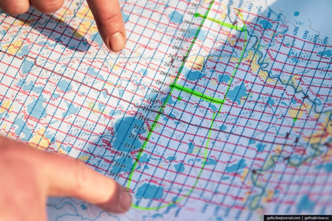 17. В результате получается такая «сетка» 300×300 метров. Площадь исследований, расчерченная сейсмопрофилями.