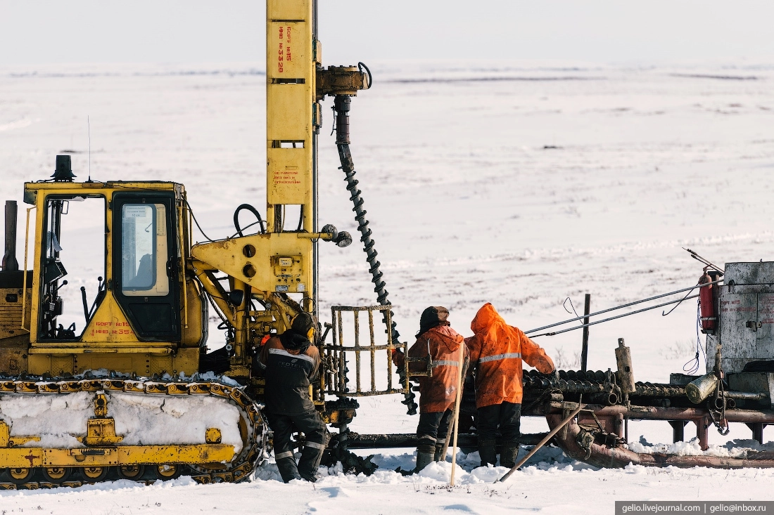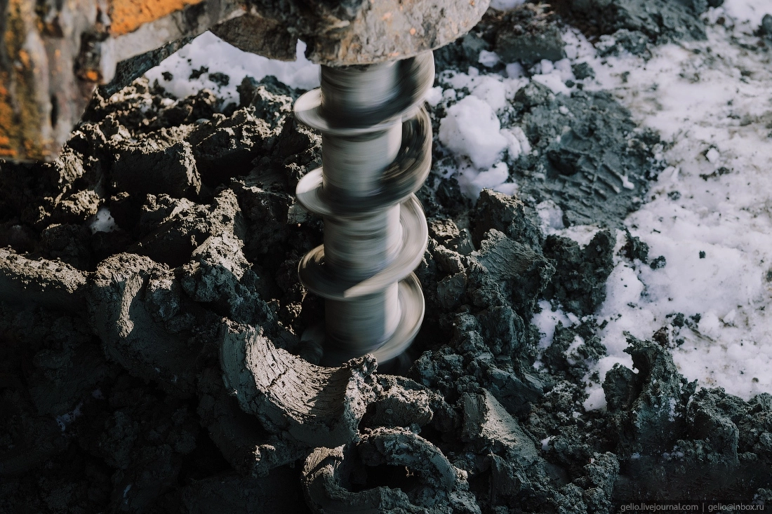 20. Буровая бригада в процессе наращивания шнековой колонны.