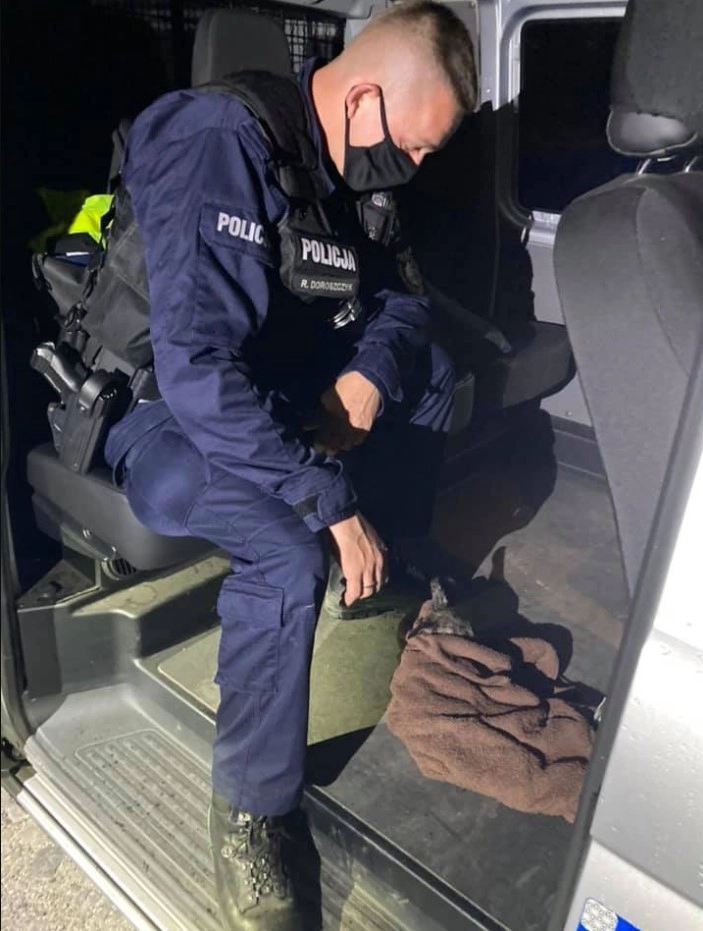 Один из офицеров позвонил ветеринару, чтобы выяснить, как спасти малыша