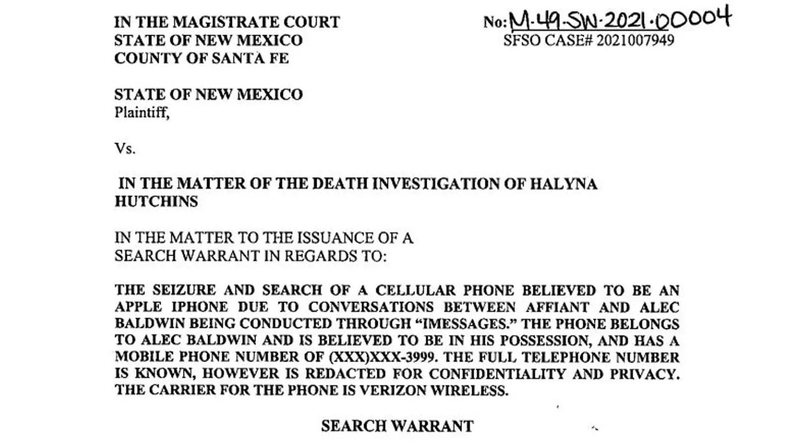 Полицейские планируют найти в телефоне улики, которые помогут в расследовании трагического инцидента. Об этом сообщает Sky News со ссылкой на постановление суда в Санта-Фе.