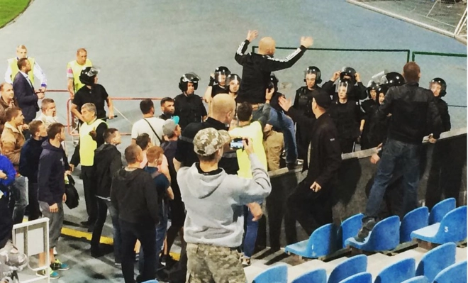 Варшавские ультрас весь матч провоцировали болельщиков украинской команды громогласной руганью в адрес Степана Бандеры и других новоиспеченных героев Украины, скандируя, что Бандера — знаменитое русское слово из трех букв, желали гибели всем его последователям и вдобавок утверждали, что Львов — польская земля.