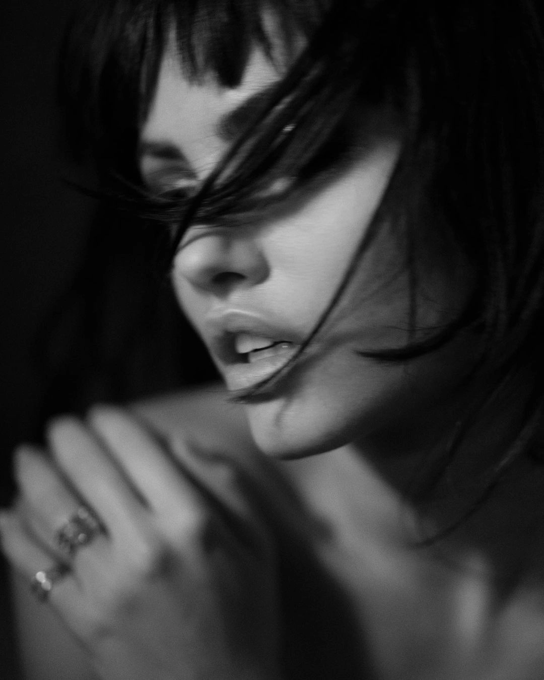 Так, в начале года Тилан опубликовала кадры из фотосессии, на которой она запечатлена в белоснежной юбке в пол. Обнаженную грудь модель прикрывает руками. Дополнил образ короткий черный парик.