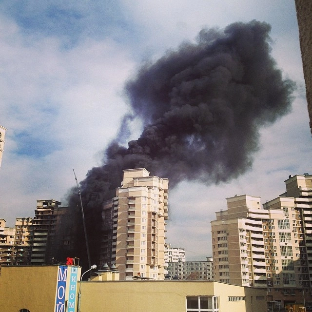 В Москве, в районе Теплого стана в среду, 9 апреля, произошёл пожар. Горел строящийся 16-этажный дом, пламя выбивалось наружу, дым был виден из других районов Москвы. Местные жители опасались, что здание может выгореть полностью.