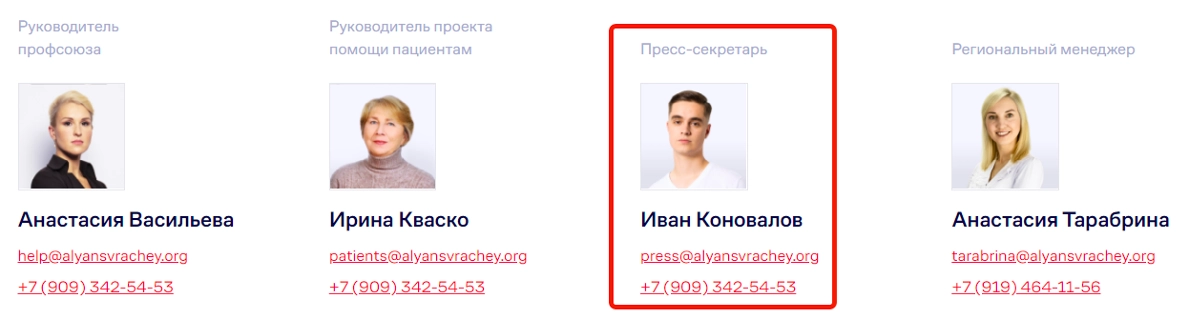 По информации блога «Фонд бабла с коррупцией», в середине октября 2020 года пресс-секретарем «Альянса врачей» стала Мария Гомонова. Уже через две недели на сайте организации сообщили, что она покинула пост. В настоящее время пресс-секретарем якобы снова является Иван Коновалов.
