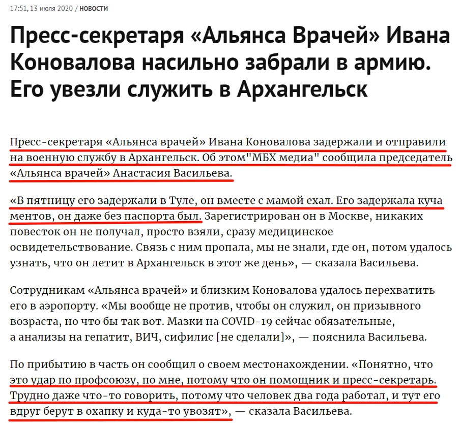 Ранее личный окулист Навального и глава «Профсоюза врачей» Анастасия Васильева заявляла, что Коновалова забрали служить в армию 10 июля 2020 года. Завершить срочную службу в армии он должен летом 2021 года, подчеркнули авторы блога «Фонд бабла с коррупцией».