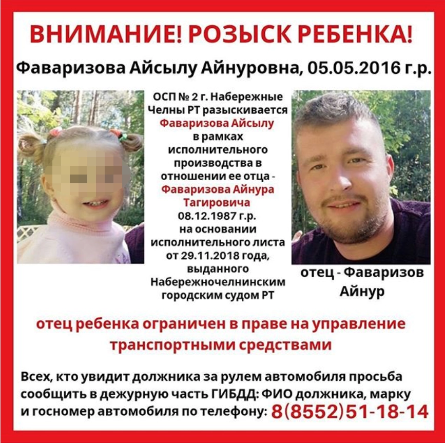 Со своей дочкой Алсу находится уже несколько дней. Вернуть ребенка удалось 29 сентября после того, как днем раздался звонок от судебного пристава. Собеседник заявил, что поступили сведения о местонахождении девочки, и попросил прибыть по названному им адресу. Алсу была там примерно через четыре минуты.