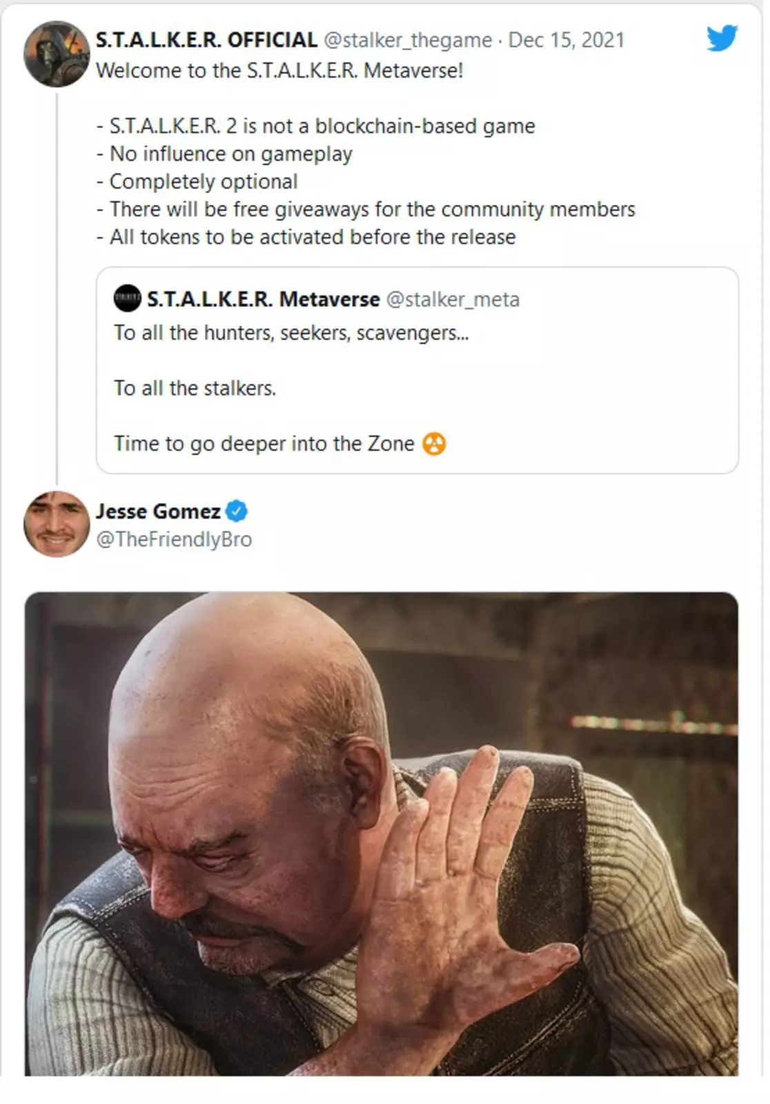 «Учитывая мировые тенденции в игровой индустрии, мы можем сделать больше, чем просто предложить иммерсивный игровой опыт. Наши игроки смогут глубже присутствовать в геймплее, и мы дадим им эту возможность, представив первую игру с уникальным мета-опытом. Шутер станет продуктом, которым смогут владеть все», — сказал генеральный директор GSC Game World Евгений Григорович.Торги будут проводиться на DMarket, торговой платформе NFT и площадке для скинов из CS: GO, Dota 2 и Team Fortress 2. В настоящее время на странице «Сталкера» нет информации о ценах, но магазин обещает трём счастливчикам попадание в игру в качестве NPC.