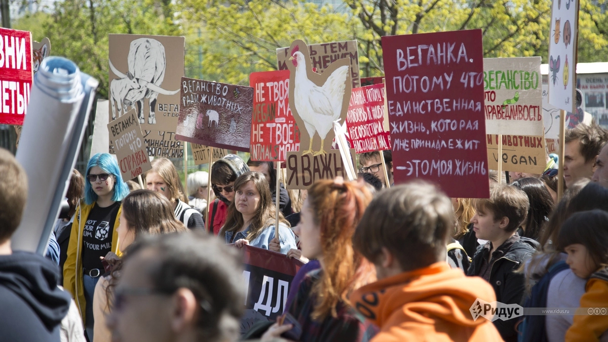 Ежегодно «Монстрацию» посещает большое количество веганов. Во время шествия они обычно несут транспаранты с призывами не есть мяса. В этом году организаторы шуточного шествия обратились к радикальным вегетарианцам с просьбой идти отдельной колонной. По их мнению, лозунги веганов не отражают истинного смысла мероприятия.