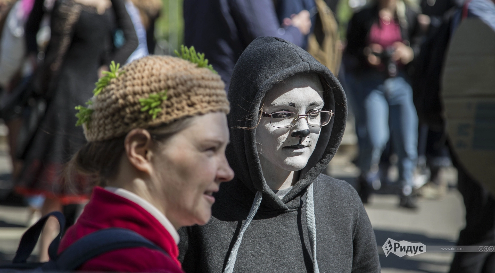 В Москве прошла ежегодная акция «Монстрация». Это шуточная молодежная демонстрация с абсурдными лозунгами, плакатами и нарядами. В ней приняли участие несколько сотен москвичей и гостей столицы.