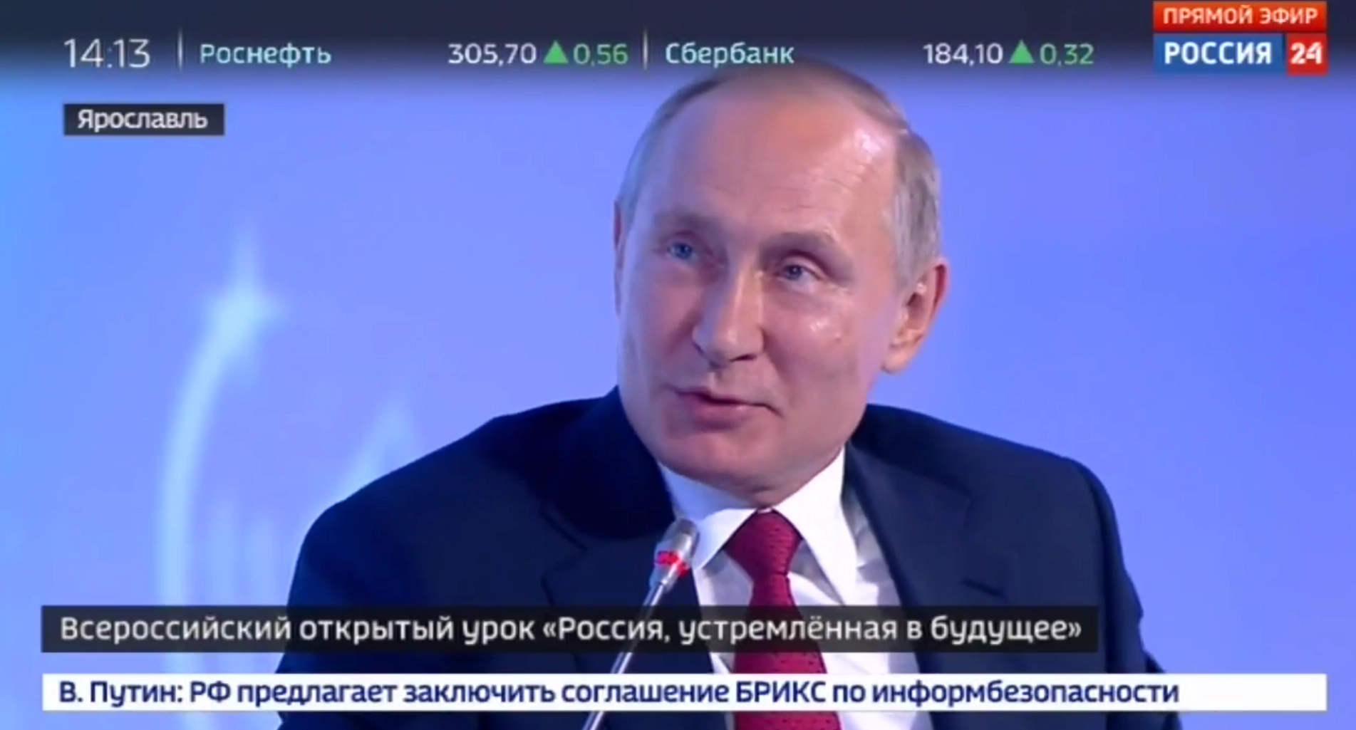 Президент России Владимир Путин побывал на форуме профессиональной навигации «ПроеКТОриЯ», где в рамках открытого урока пообщался с принимающими участие в мероприятии старшеклассниками.