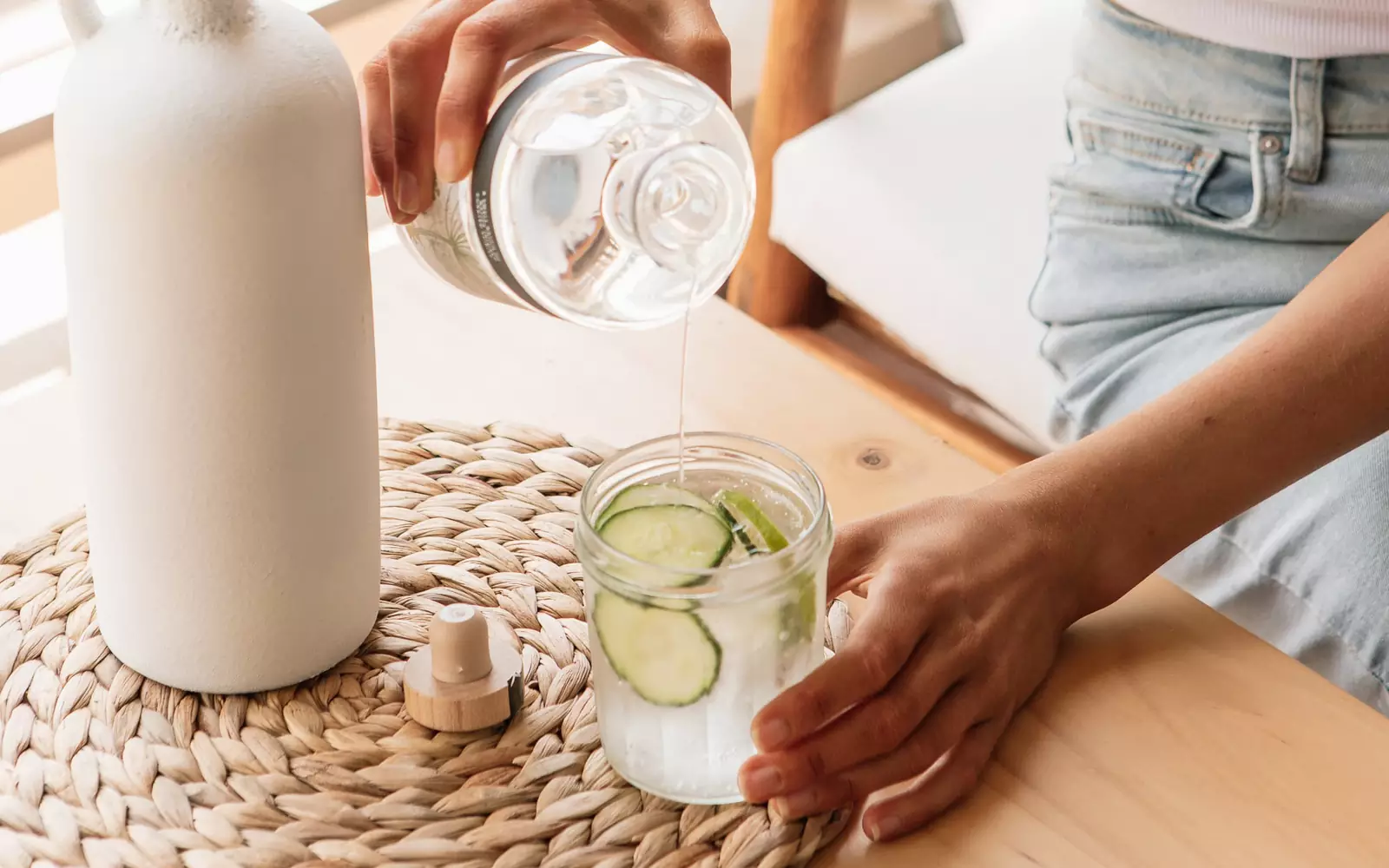 Нарезанный тонкими дольками огурец придаст воде приятный освежающий вкус и аромат. Для этого достаточно добавить дольки в воду и оставить их на несколько часов. Обязательно проверьте, чтобы огурцы не горчили, иначе они передадут воде свой горький вкус, и это вряд ли вам понравится.