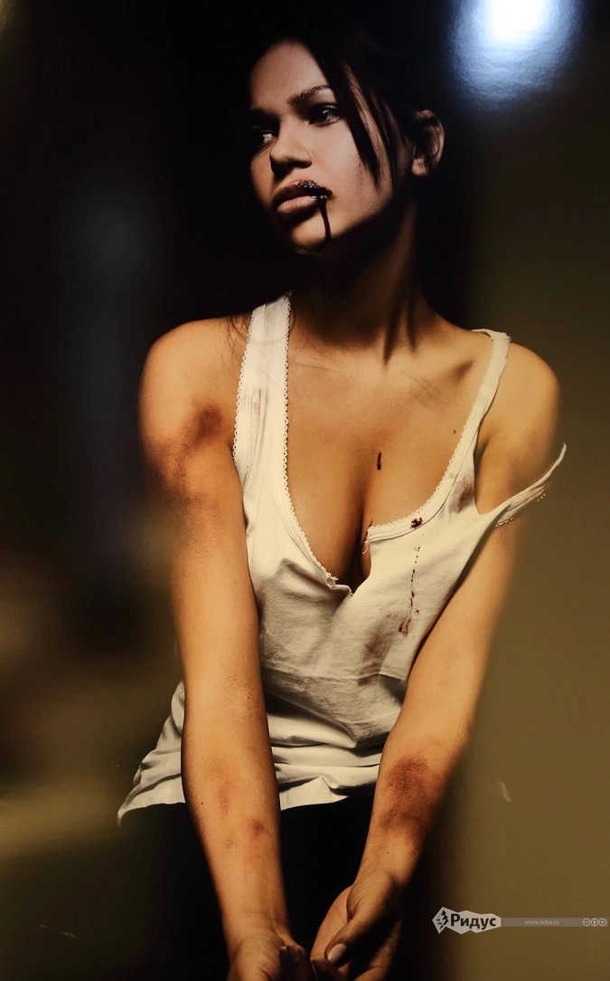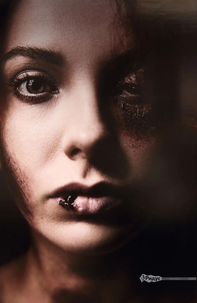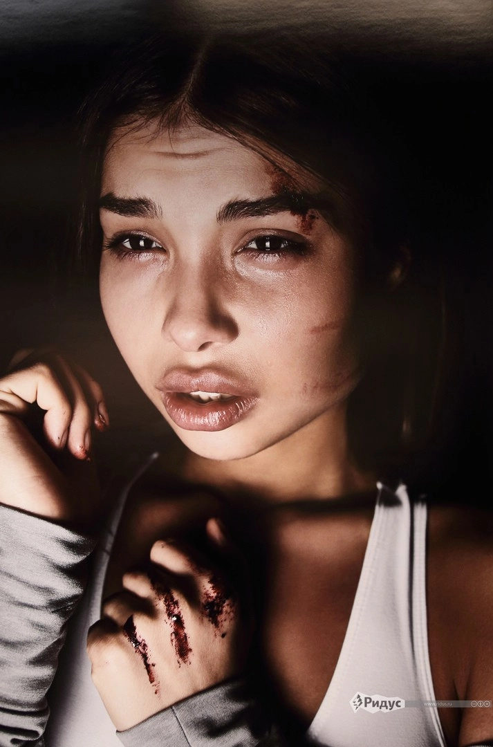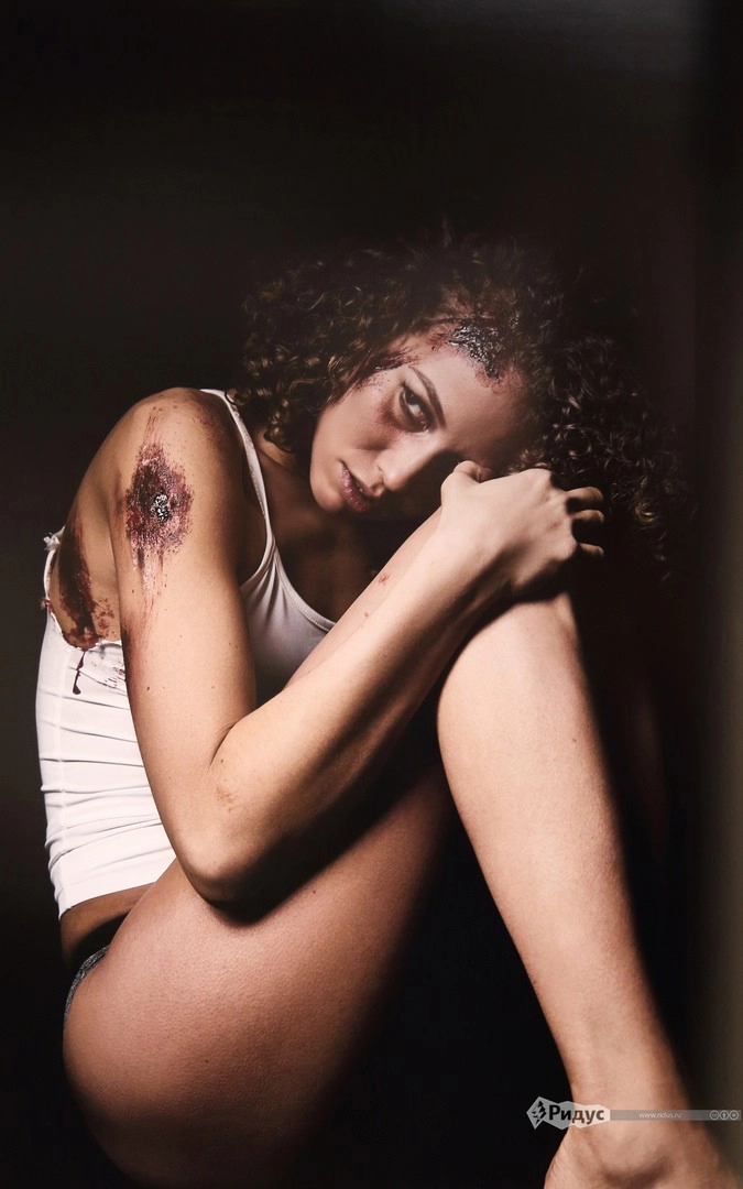 Синяки, конечно же, не настоящие, а просто накладной грим, но он наглядно показал примеры бытового насилия.
