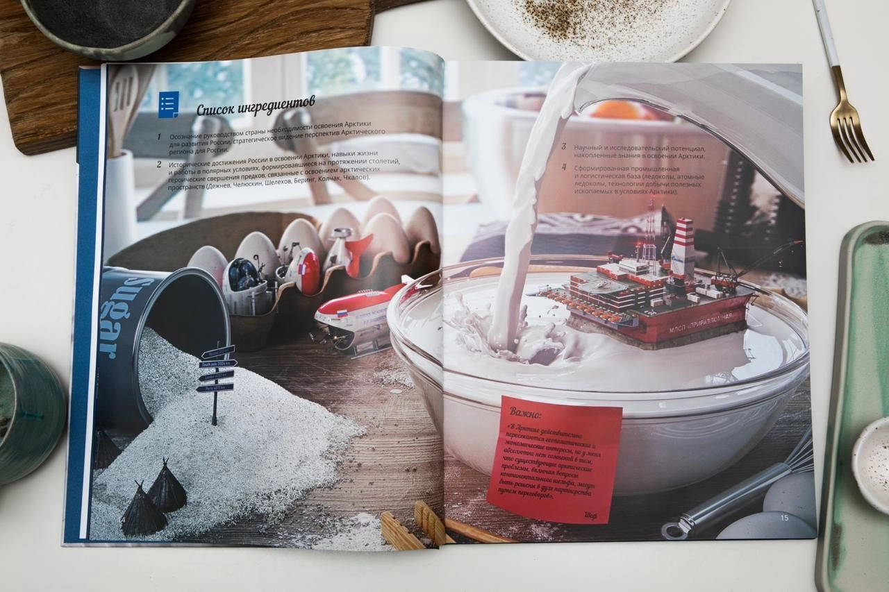 Каждый рецепт проработан максимально подробно. Каждый элемент значим и находится на своем месте не просто так. В книге нет ни одной фотографии. 3D-моделирование, цифровой скульптинг, рендеринг, текстурирование — это и многое другое использовали наши художники для создания технологичных иллюстраций особого качества, которые потребовали более двух лет кропотливого труда, — отмечает Левченко.«Каждый раз, листая страницы, вы будете находить новые смыслы и шифры, вложенные в текст и графику. В результате у нас получилась книга о вкусной и здоровой политике», — говорит автор.