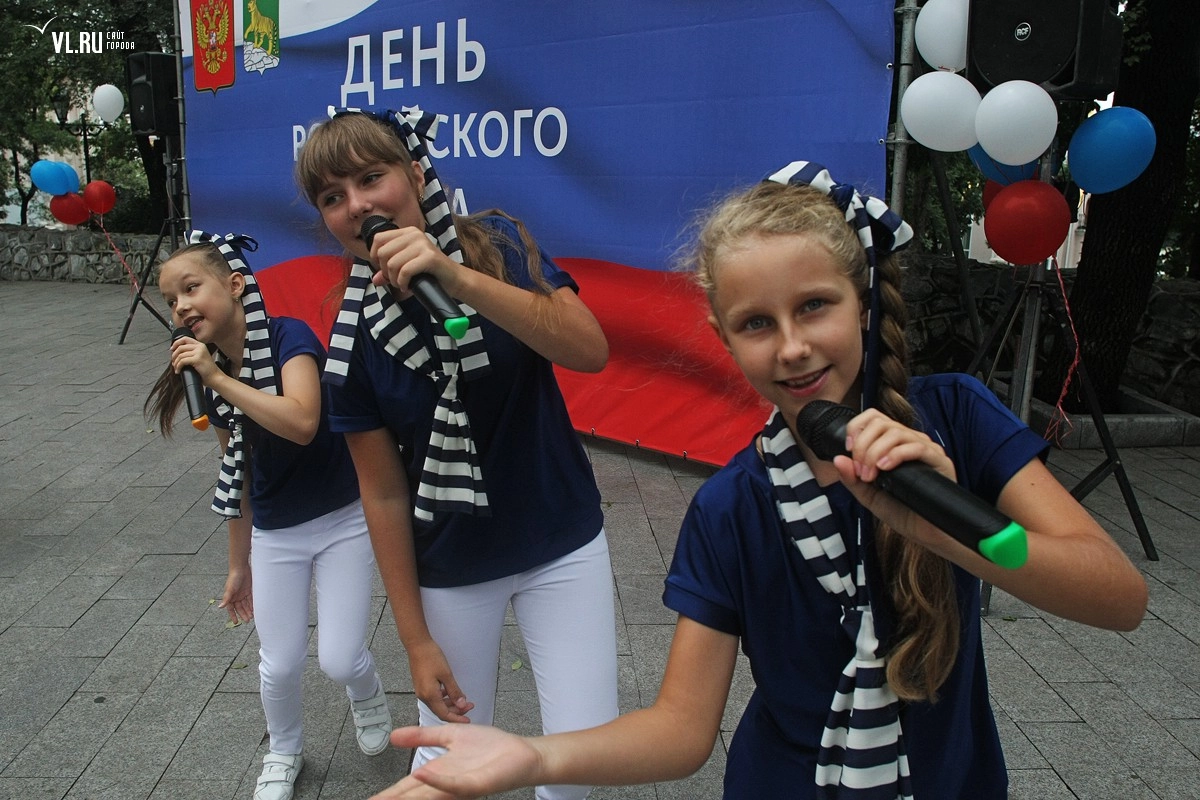 В столице Приморья День флага отметили концертами и викториной: праздничные мероприятия сконцентрировались в Адмиральском сквере, где собралось несколько десятков горожан.