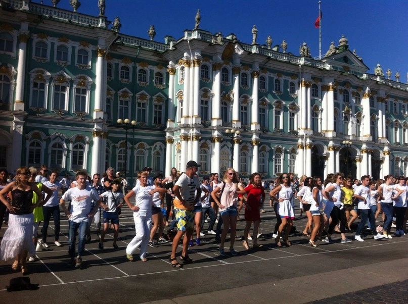 А прямо в эти минуты на Дворцовой площади проходит открытый урок танцев народов России. Танец под композицию ди-джеев Smash&Vengerov «Только вперед» исполнят танцевальные коллективы Петербурга при участии жителей и гостей города. Присоединиться к акции смогут пользователи интернета, опубликовав в социальных сетях видеоролик с приглашением к участию с хэштегом #танцуйтриколор.