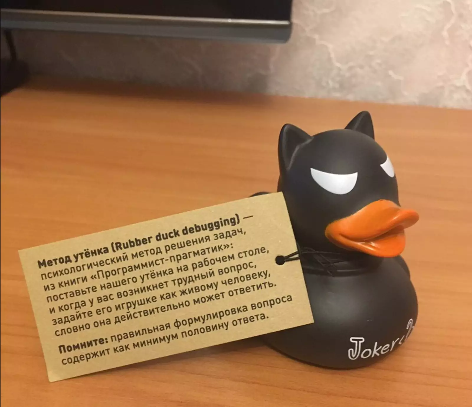 Да, и вот еще интересное. Метод утёнка (англ. Rubber duck debugging) — психологический метод решения задачи, делегирующий её мысленному помощнику. Метод описан в книге «Программист-прагматик».