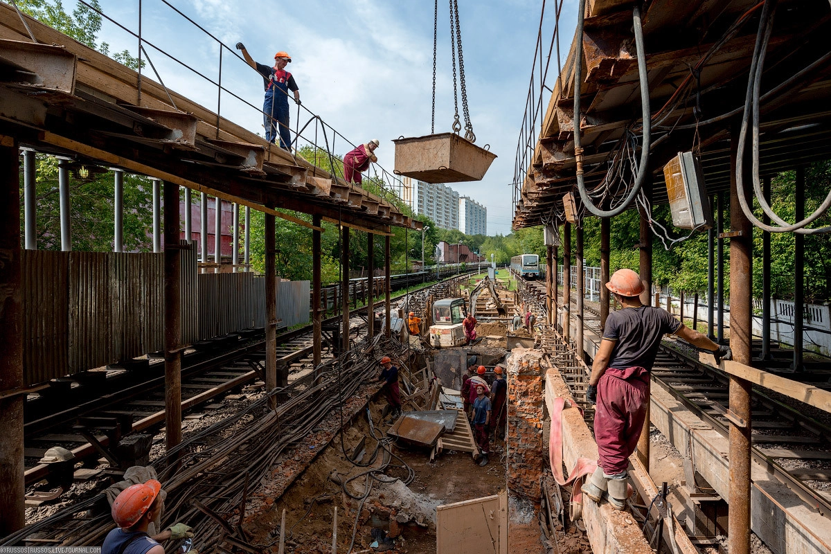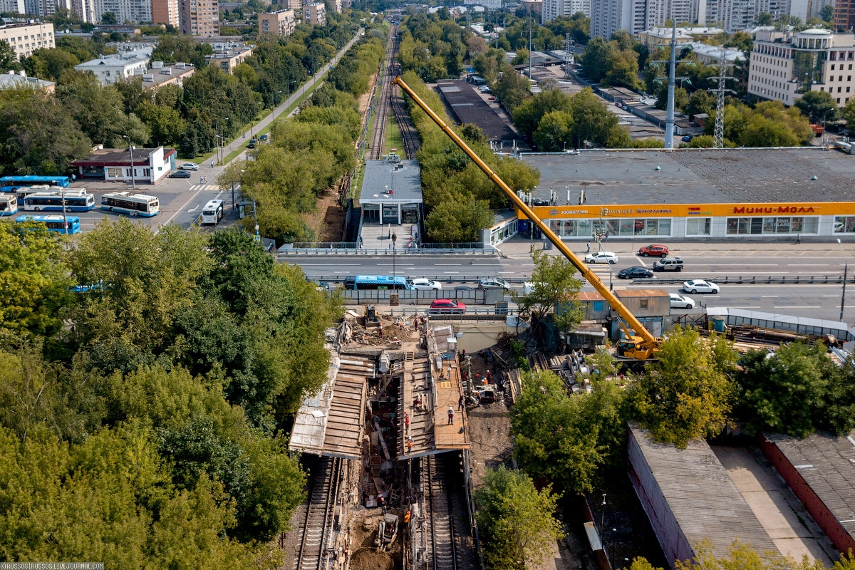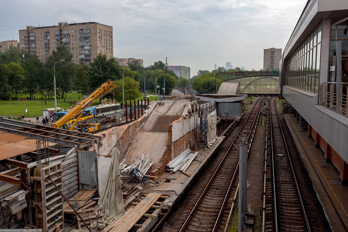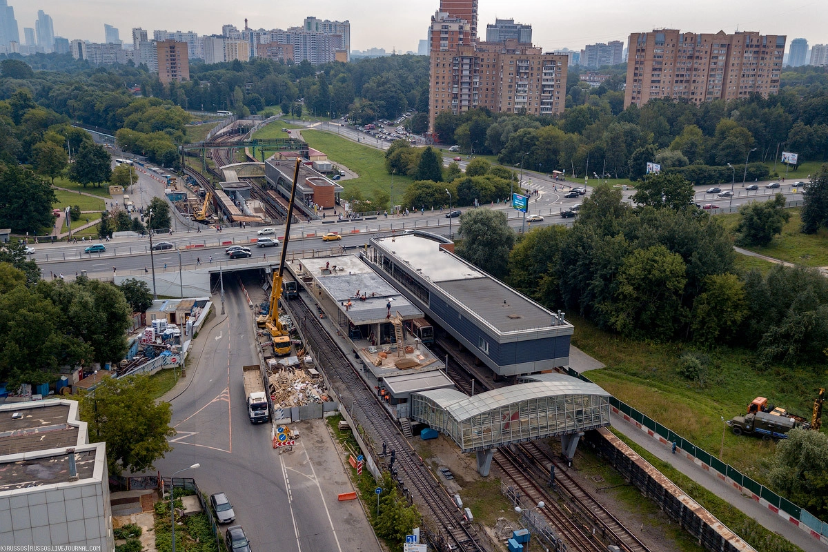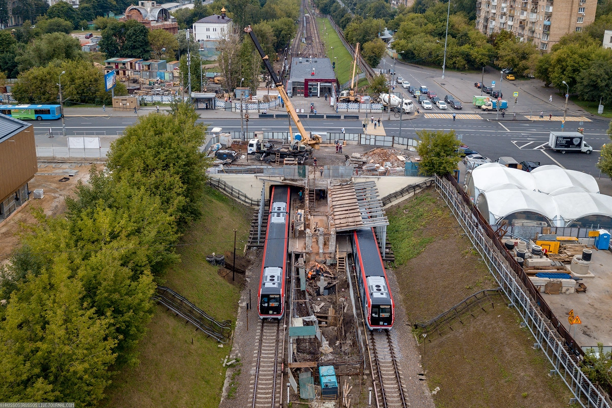 Обратите внимание на машины справа — это геологоразведка. Они стоят на территории площадки строительства станции «Можайская» Большой кольцевой линии.