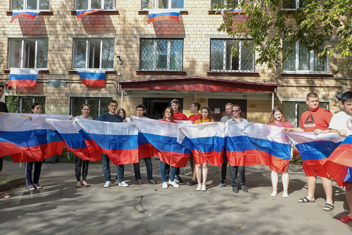 В одном из подмосковных общежитий студенты отмечают День Государственного флага РФ