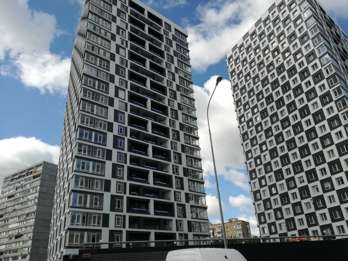 Флаги украшают балконы многоэтажек в Москве