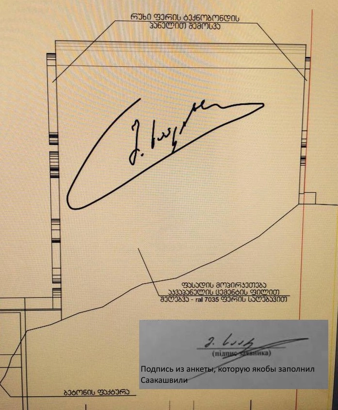 …Я с полной ответственностью утверждаю, что это не моя подпись и не мною заполненная анкета! Я требую немедленно провести графическую экспертизу, тут мы имеем дело с уголовным преступлением! Сейчас вы понимаете, насколько высоко в государственную власть проникли жулики! написал Михаил Саакашвили.В качестве доказательства он опубликовал фотографии Президентской библиотеки Саакашвили в Тбилиси. Особенность этого здания в том, что на нем размещен огромный автограф экс-президента Грузии. Также он опубликовал снимок документа из официального архива этой библиотека, где также зафиксирована его настоящая подпись.