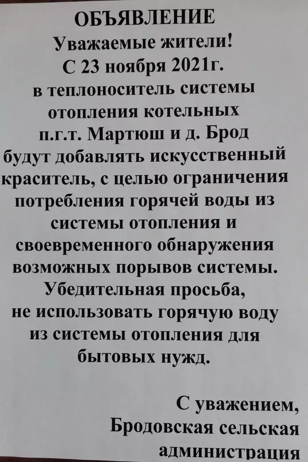 Вскоре в Сети появилось и убедительное объяснение мартюшского феномена. Администрация Бродовского сельского поселения, в которое входит поселок, сообщила, что еще 23 марта начала добавлять в воду в отопительной системе краситель, чтобы выяснить, кто подключается к отоплению и сливает себе горячую воду.