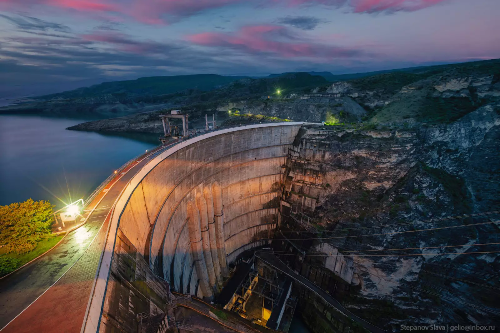 Конструкция сделана наклонно и подпирается второй стеной или контрфорсными элементами, которые передают давление на основание плотины. По такому принципу построена Зейская ГЭС. Арочно-гравитационные. В них давление передается одновременно на стены каньона и основание плотины. Обычно такую конструкцию используют при высоте плотины более 100 м. Примеры — Саяно-Шушенская и Богучанская ГЭС. Арочные. Изогнуты выпуклой частью в сторону водохранилища, поэтому давление воды перераспределяется с центра на берега. Склоны Чиркейского ущелья подходили для использования арочной конструкции, поэтому инженеры выбрали именно эту конструкцию.