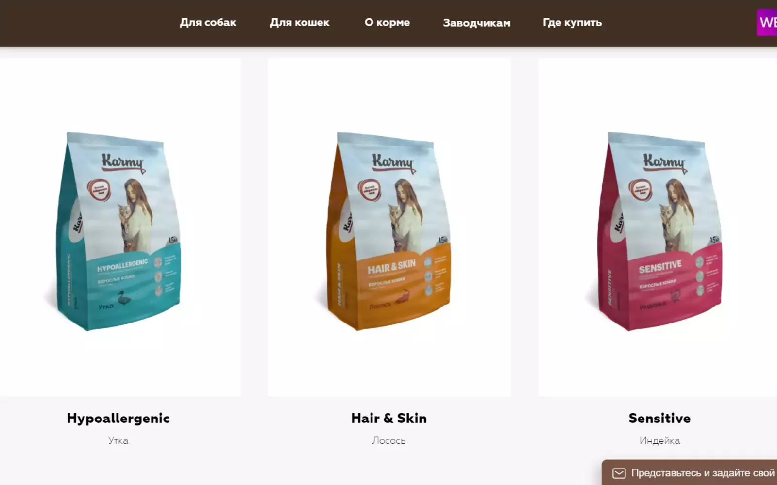Из минусов Karmy можно отметить недостаточно расписанный состав некоторых кормов: не указан вид и процент используемого мяса или злаков. Узнать, в каких магазинах вашего города есть корма Karmy, можно с помощью карты на официальном сайте бренда.