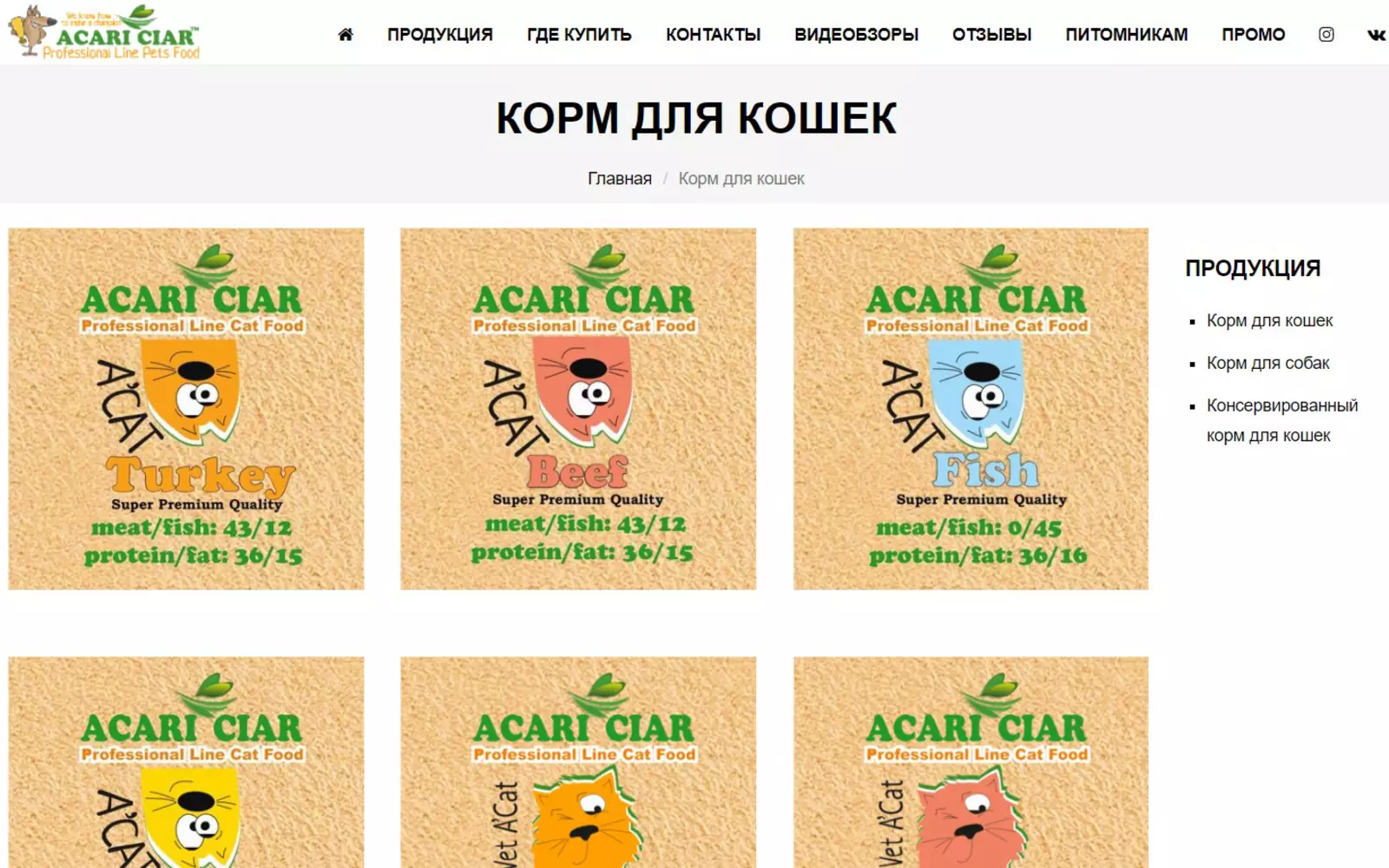 К сожалению, продукцию Acari ciar купить не так просто, поскольку она не продается на Ozon или Wildberries. Корма можно приобрести только у официальных представителей, которые есть не во всех городах. Также у рационов данного бренда очень короткий срок годности — не более шести месяцев (большинство сухих кормов хранится около двух лет).