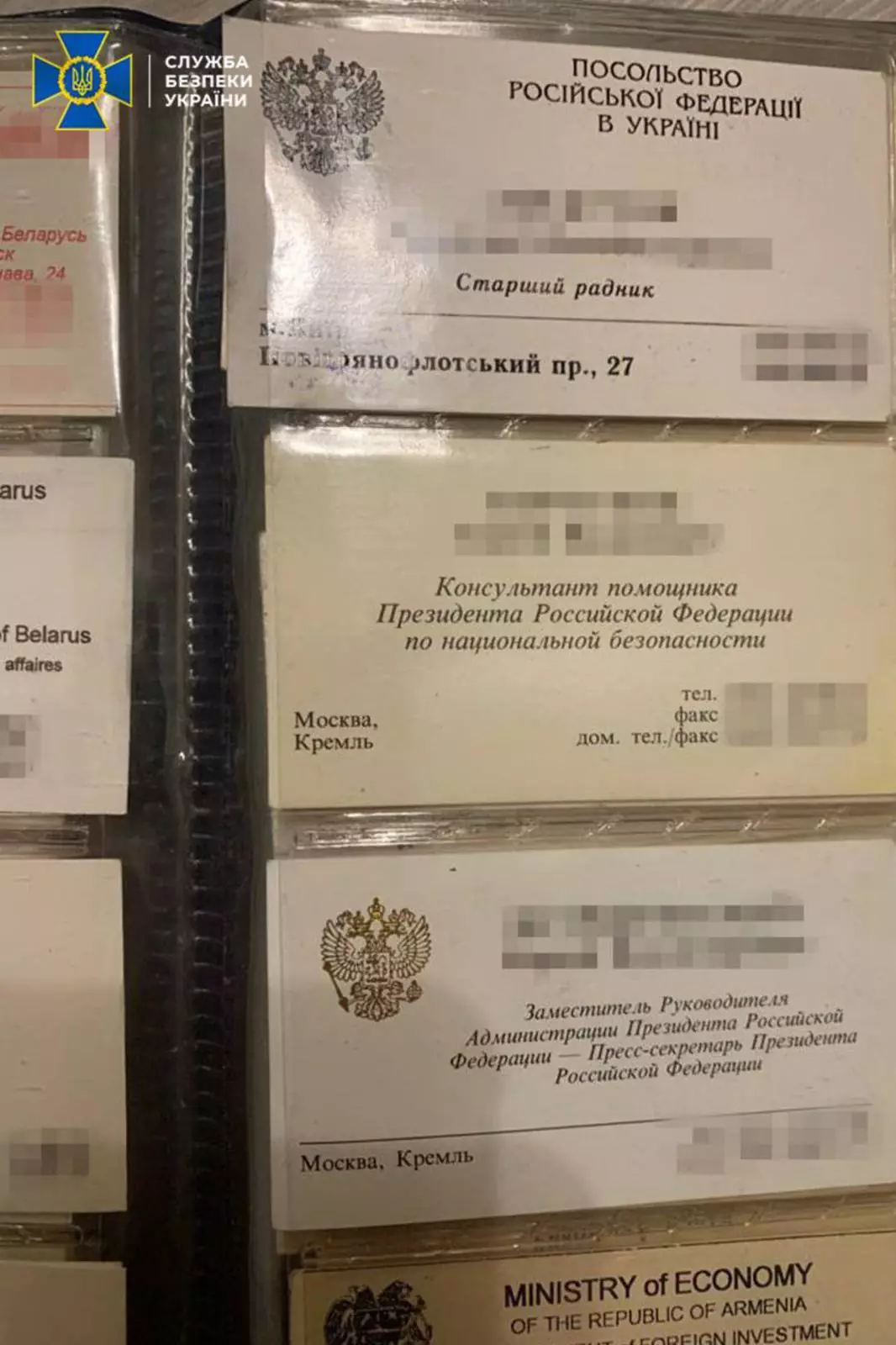 Его подозревают в государственной измене. В соцсетях СБУ разместила фотографии его личных вещей. Среди них есть визитные карточки российских чиновников, в том числе и пресс-секретаря президента России Дмитрия Пескова. Кроме того, опубликовано фото смартфона задержанного, на экране которого видна переписка с редактором авторской передачи журналиста Владимира Соловьева «Соловьев Live».