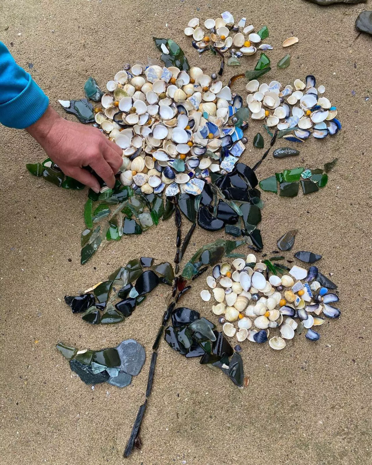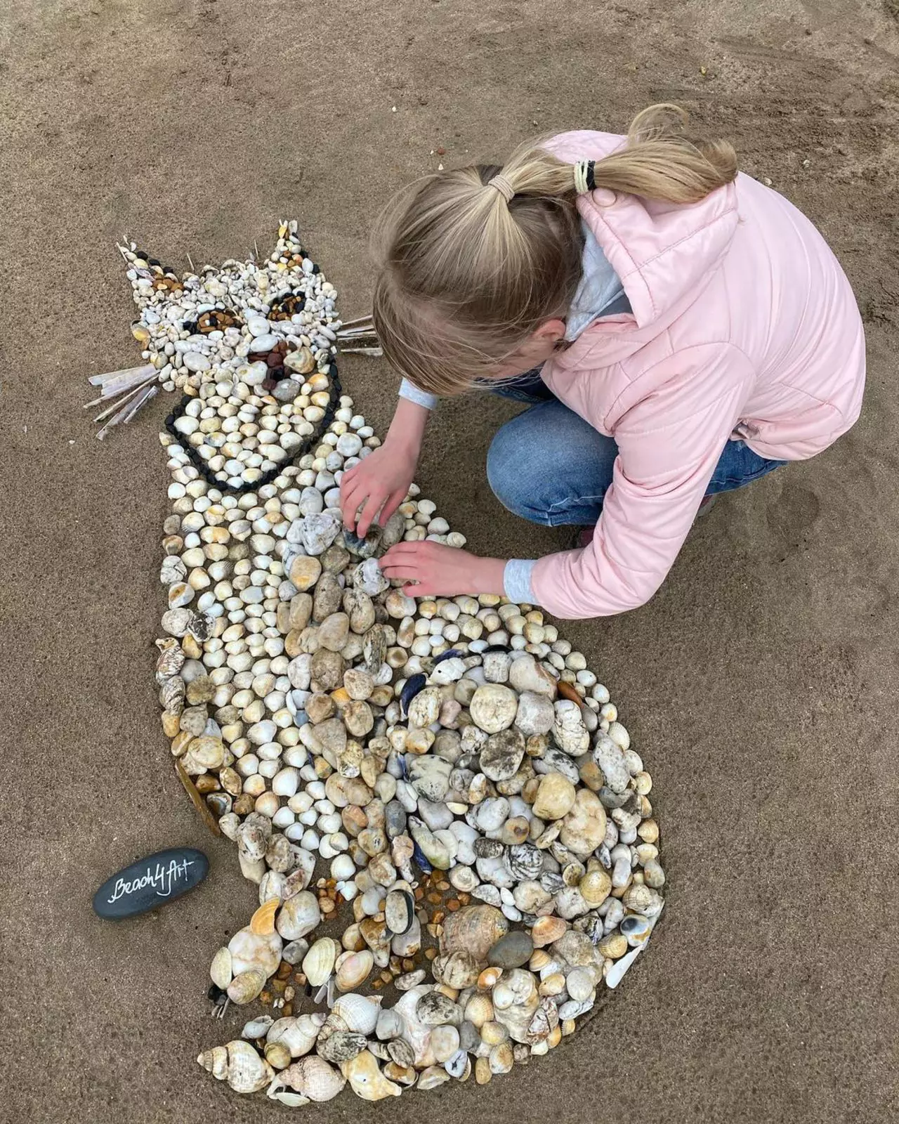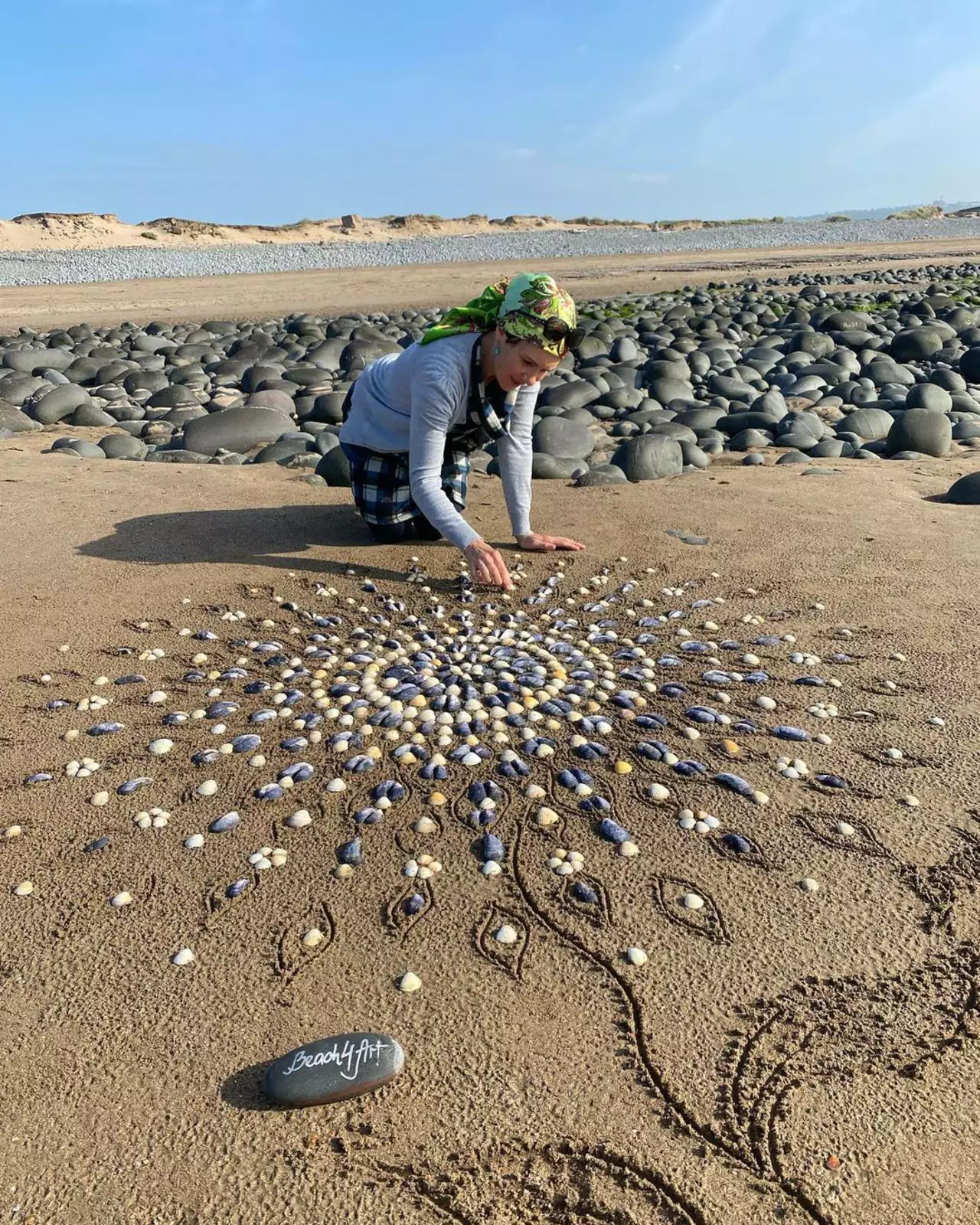 Вскоре семья обнаружила, что может использовать камни, ракушки, морское стекло, дерево и даже фрукты и ягоды для создания потрясающих произведений искусства на песке. Первым творением семьи Иевы, Дзинтарса и их детей была простая мандала, но вскоре появились и более сложные конструкции.