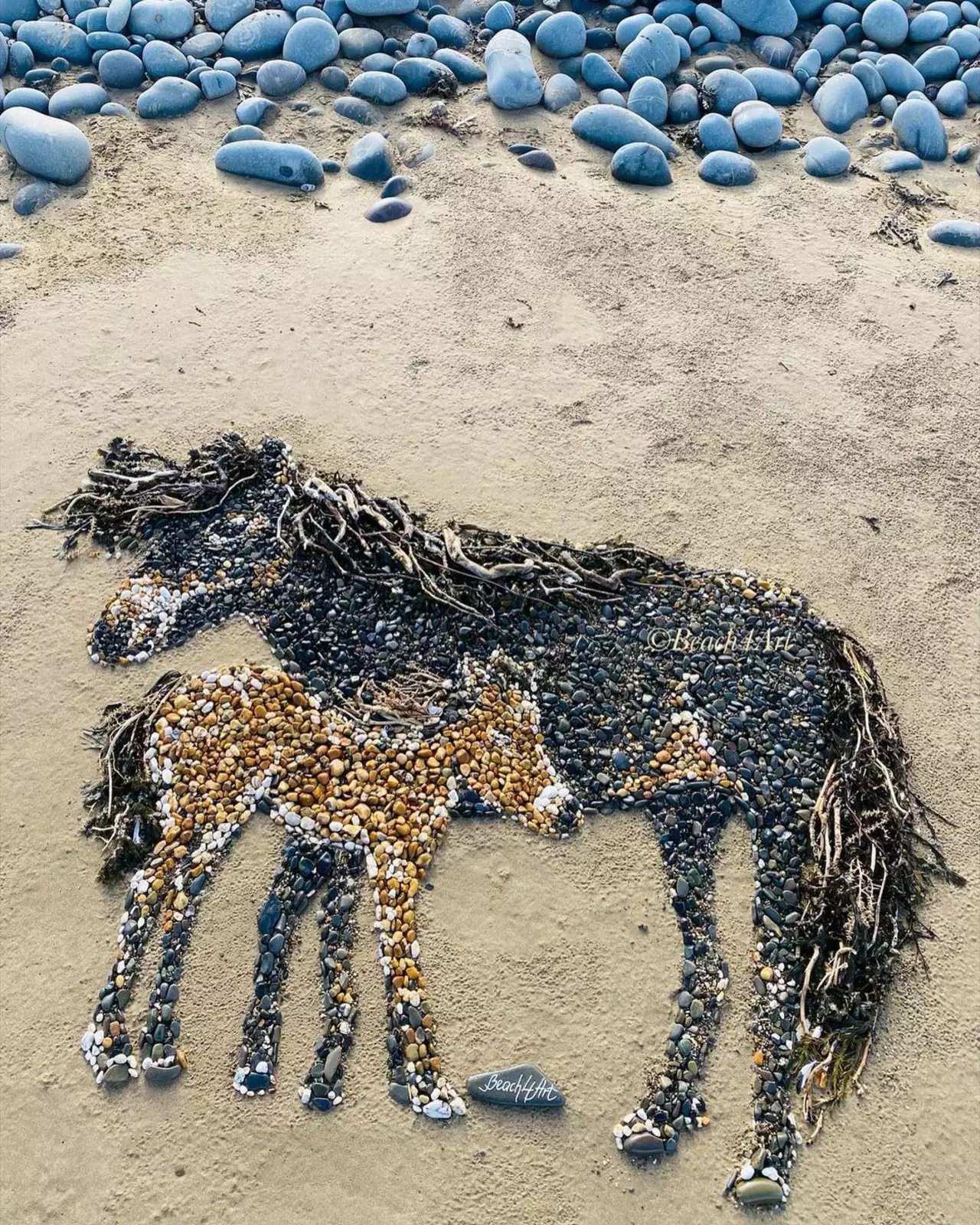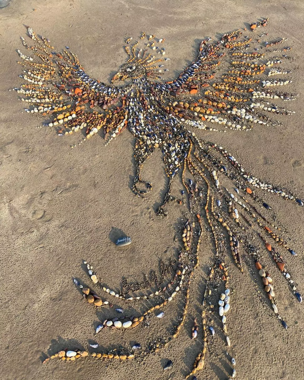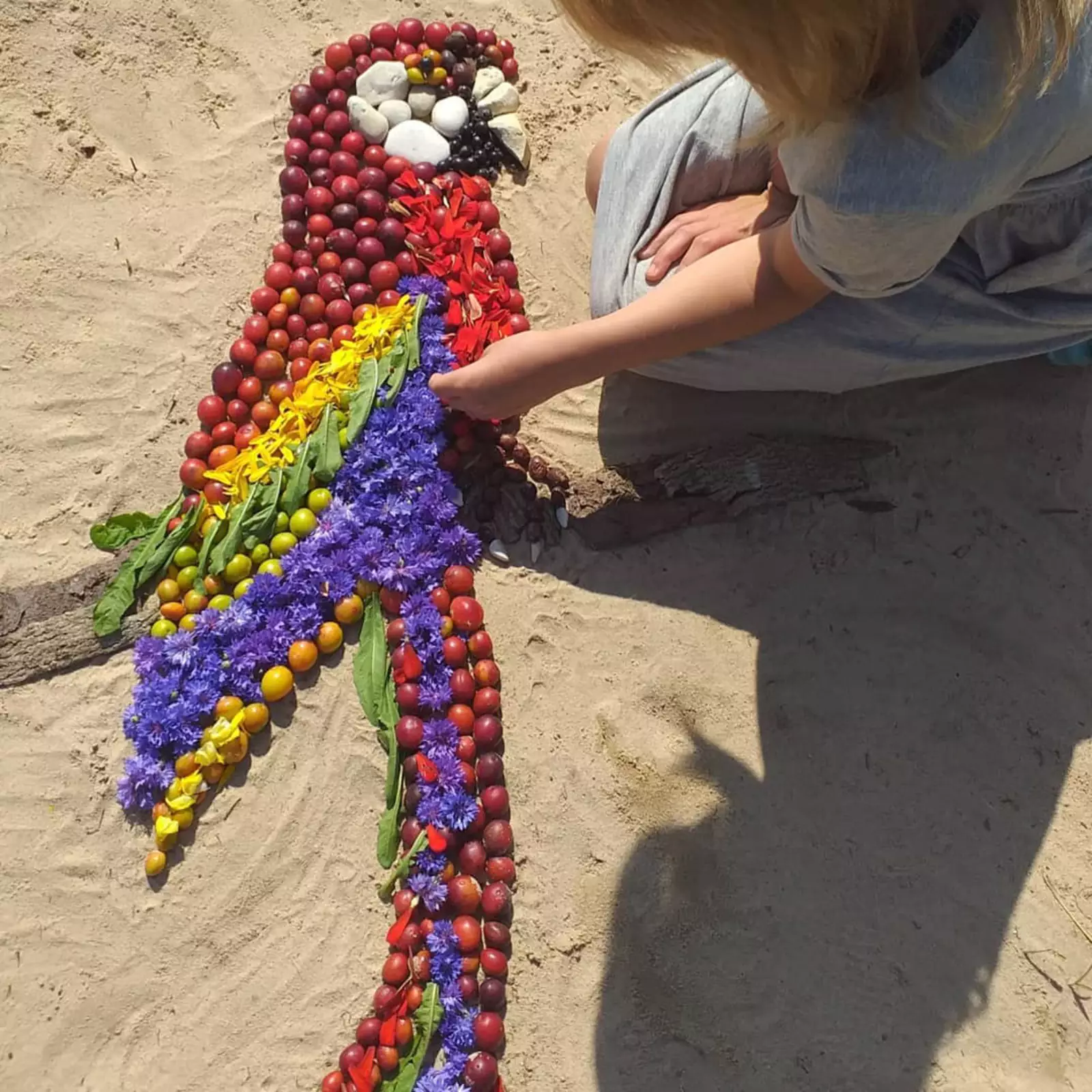 Вскоре семья обнаружила, что может использовать камни, ракушки, морское стекло, дерево и даже фрукты и ягоды для создания потрясающих произведений искусства на песке. Первым творением семьи Иевы, Дзинтарса и их детей была простая мандала, но вскоре появились и более сложные конструкции.