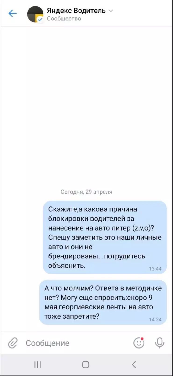 А на это согласие сервис не дает и вдобавок отказывается объяснять таксистам свое решение. Об этом свидетельствуют скриншоты переписки водителей с сотрудниками компании.