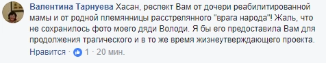 Я с любовью и уважением подбирал их современные воплощения, не допуская ни малейших двусмысленностей. Если я оскорбил чувства хоть кого-то из родственников тех, кто изображён на фотографиях, я со всей искренностью приношу им свои извинения — я преследовал, как мне кажется, благородную цель, которую, как оказалось, я, сам того не ведая, достиг — огромное количество людей всколыхнулось и помянуло души этих людей так осмысленно и многократно, как не поминали их, наверное, никогда до этого. И если вы верите в „иную жизнь“, то и с этой точки зрения я сделал для них всё, что можно было бы для них сейчас сделать,оправдался художник.Фотопроект не оставил равнодушными пользователей Сети. Многие посчитали, что благодаря таким снимкам у загубленных людей появилась «иная жизнь».
